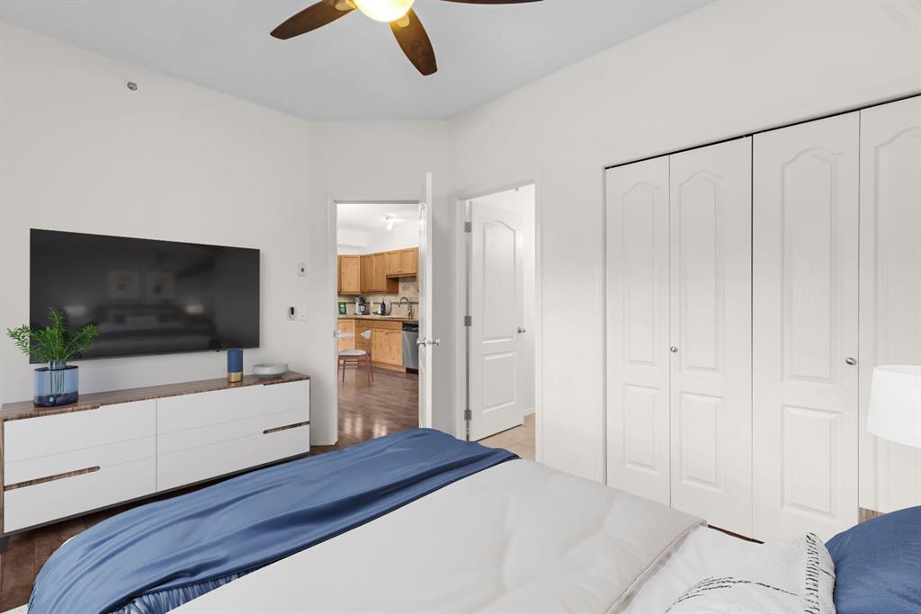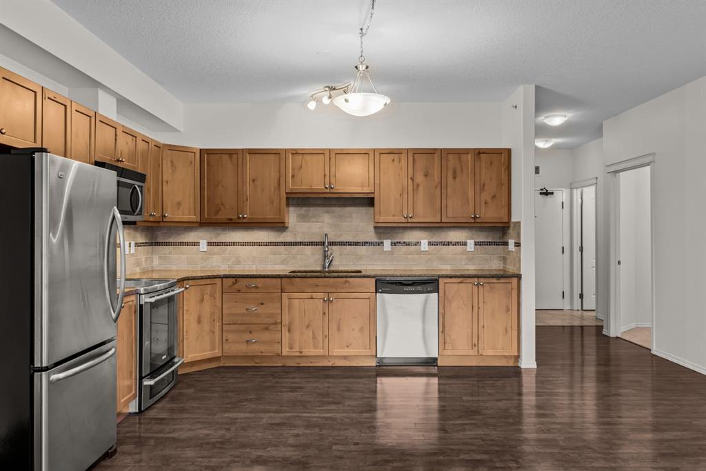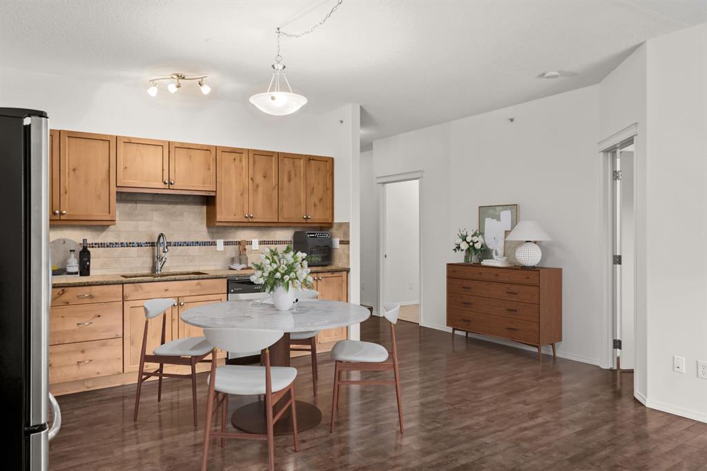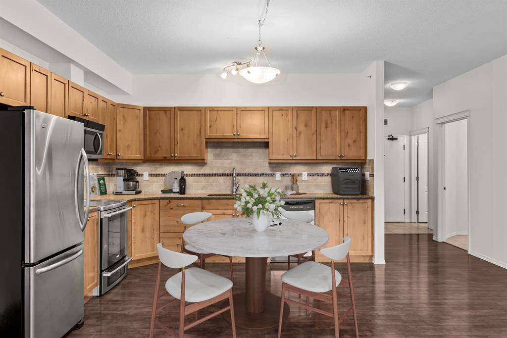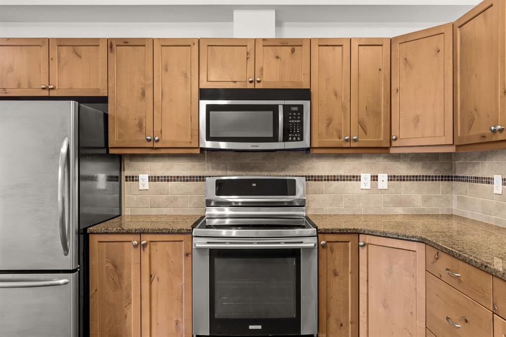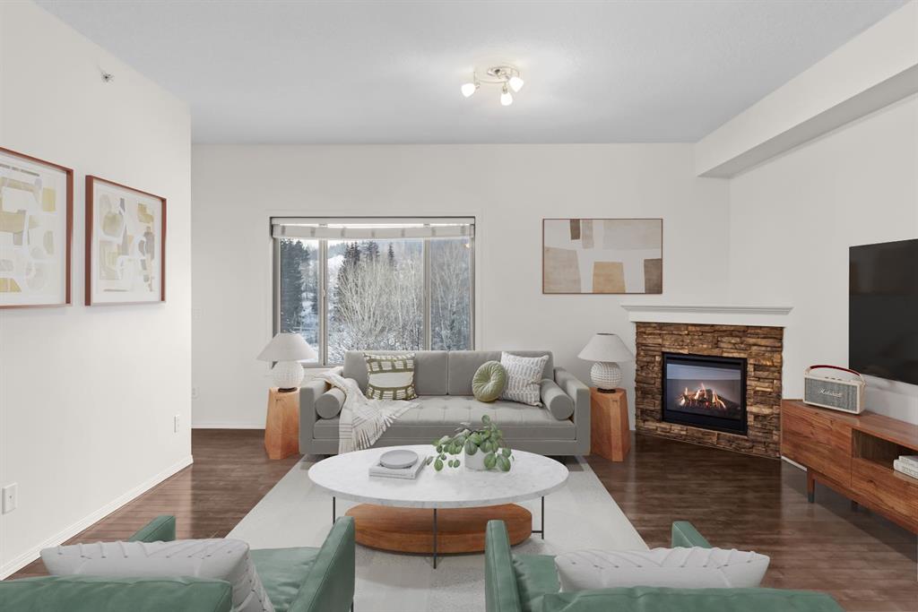 Additional highlights include two parking stalls (one underground), plus extra storage with built-in bike racks and shelving. Low condo fees and building amenities complete the package: gym, workroom, rec room, and a dog park right behind the building for your furry companion. A great opportunity for anyone looking for a refined, low-maintenance Canmore home.