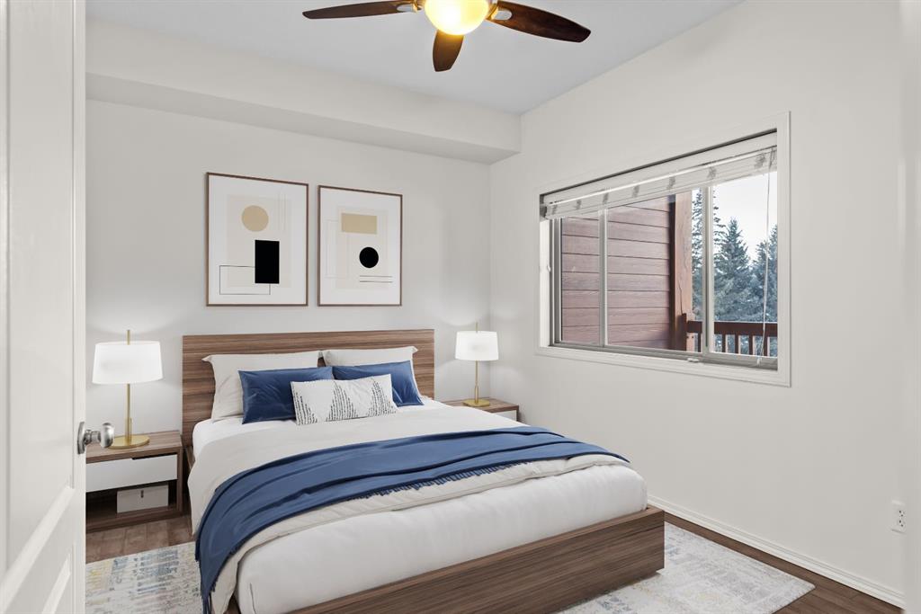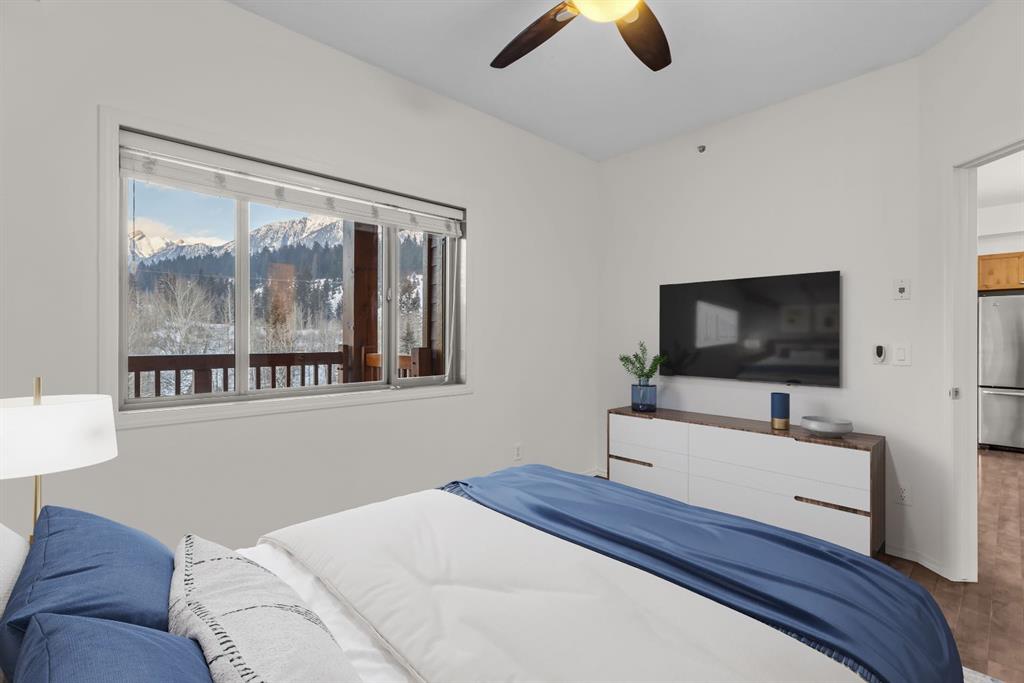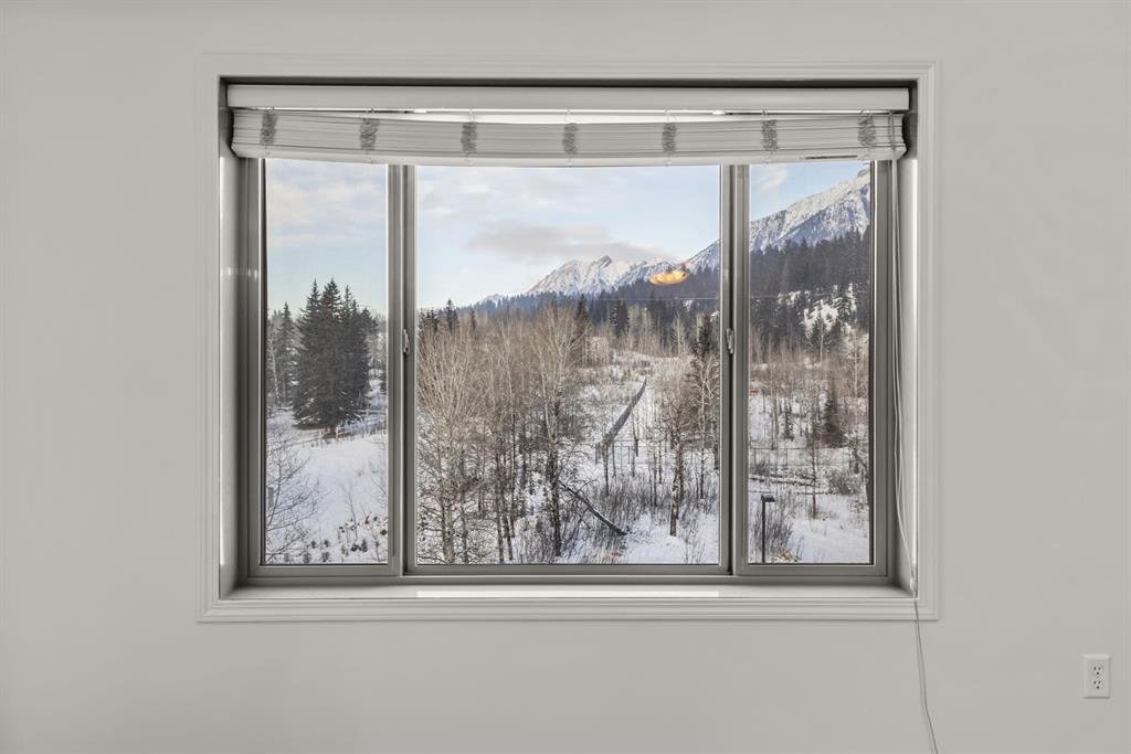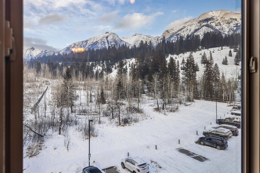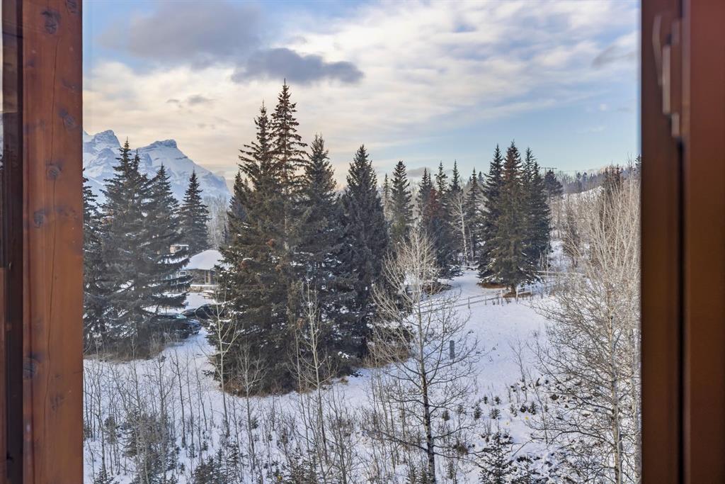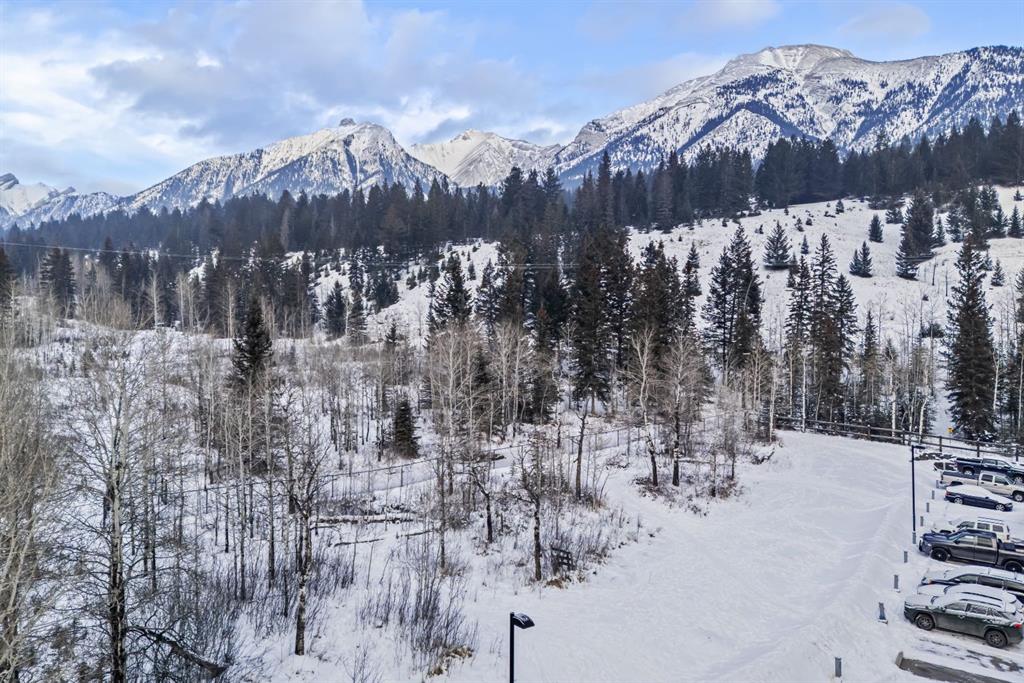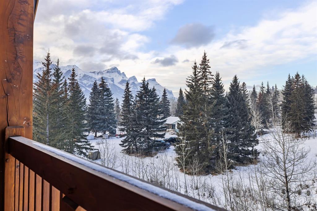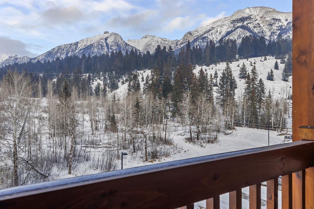 Freshly painted and beautifully maintained, this top-floor 2 bedroom, 2 bathroom condo offers privacy, natural light, and a true Canmore setting. Located on the quiet backside of the building and overlooking treed land, it enjoys mountain views and a peaceful, tucked-away feel. The large view deck is ideal for relaxing evenings under the peaks.