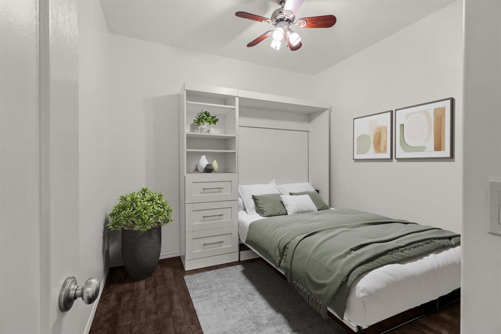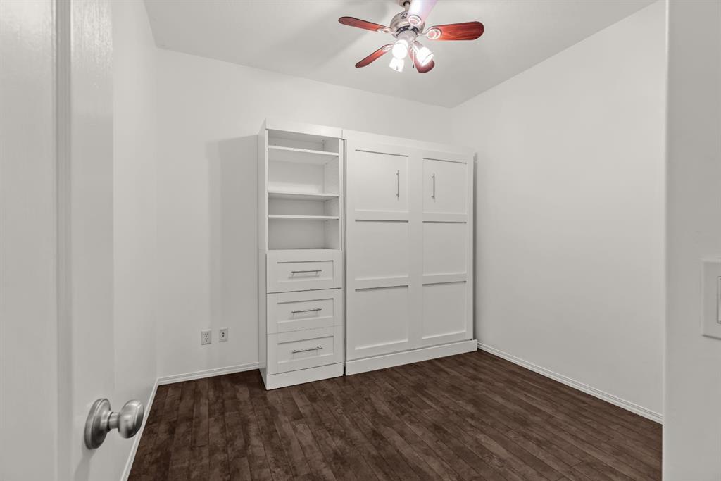 Inside, 9-foot ceilings create an airy, open atmosphere. The kitchen features stainless steel appliances, granite counters, under-counter lighting, and a built-in water purification system. The primary bedroom includes a full ensuite, and the oversized in-suite laundry and storage room is a valuable bonus. The second bedroom/den includes a Murphy bed, offering excellent flexibility for guests while still functioning great as a home office.