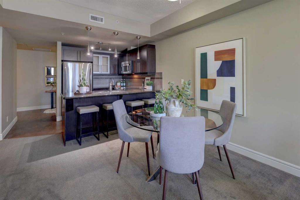 Welcome to the Montana, where luxury meets the vibrant pulse of the city! This 662 sqft move-in ready, one-bedroom plus den Condo offers a sophisticated urban sanctuary just steps from the trendy shops of Uptown 17th Avenue and blocks from the Downtown Core. Boasting a superb floor plan and highly efficient use of space, this unit has been well maintained and features a gourmet kitchen designed for the culinary enthusiast, granite countertops, a tiled backsplash, and stainless steel appliances. The open-concept kitchen and living areas are open and functional. Triple-pane energy-efficient windows frame a nice view of the downtown skyline. Step outside onto your large private balcony, complete with a gas BBQ hook-up, to enjoy the city lights in style. The primary bedroom is a bright and spacious retreat, complemented by a main bathroom finished with a deep soaker tub, granite counters, and tile floors. For added convenience, the suite includes a dedicated den, perfect for a home office, library or gym, and a laundry area w stacked washer and dryer. Living at the Montana means enjoying a premier lifestyle with access to a full-time concierge (8am-8pm Monday-Friday, & 9am-5pm Saturday & Sunday), a fully equipped exercise room, and a well-managed community. This exceptional unit also includes titled, underground heated parking stall and a rare, private storage room rather than a standard cage. Positioned seconds from the action of 17th Ave but tucked away just enough, this home offers the pinnacle of Calgary’s urban lifestyle, Book your Showing today!