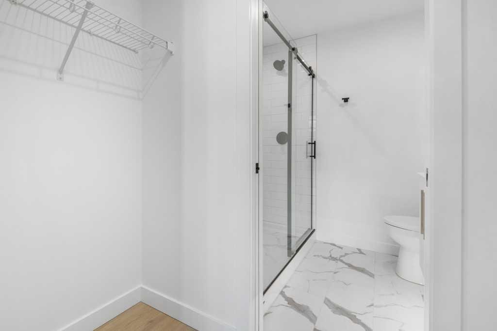 The primary suite is your private retreat, complete with a spa-inspired ensuite showcasing quartz countertops, a sleek glass-enclosed shower, and environmentally conscious fixtures that elevate the everyday.