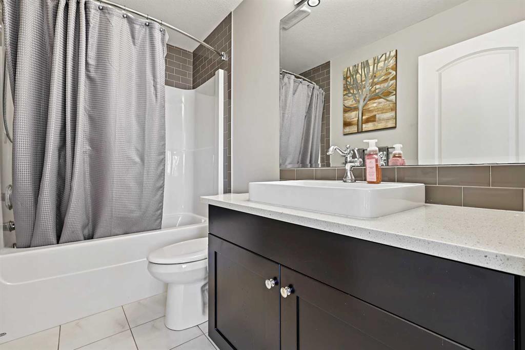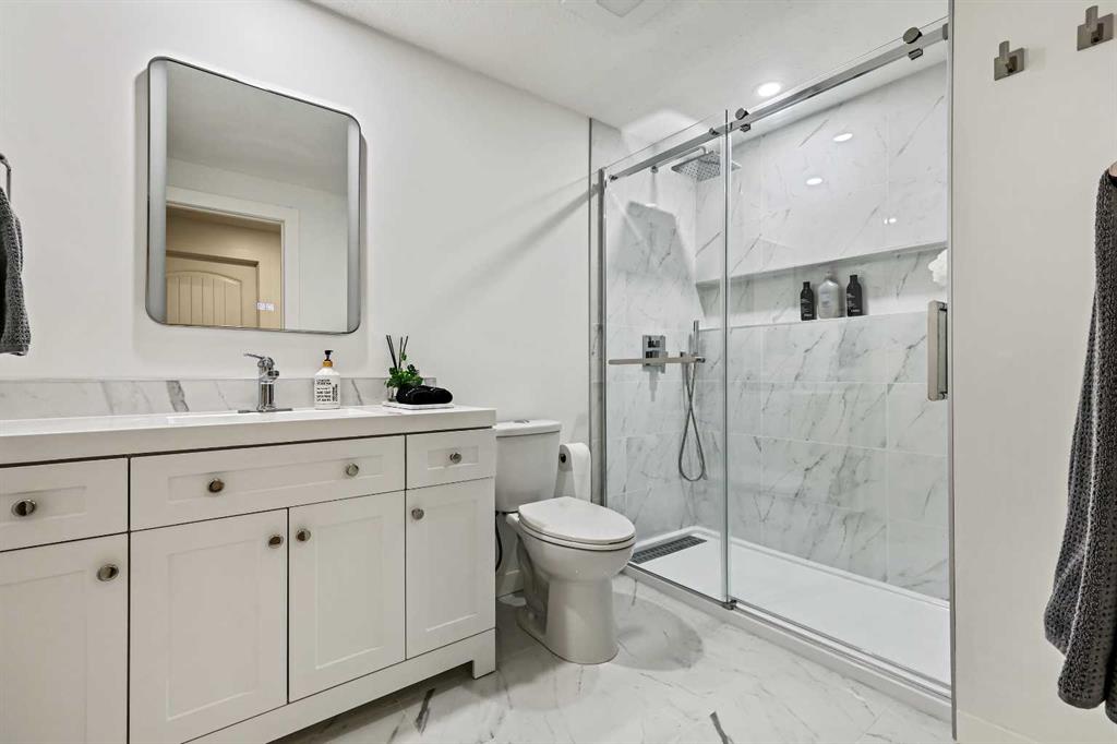 You’ll absolutely fall in love with this immaculately maintained and thoughtfully upgraded 2-storey home located on one of Mahogany’s most beloved family-friendly streets—where neighbours know your name, block parties are a tradition, and community truly thrives. From the moment you arrive, this home will have you at hello with its charming stucco and stone exterior, welcoming front porch, and undeniable curb appeal. Inside, discover nearly 2,500 sq. ft. of beautifully developed living space designed with both comfort and style in mind. The main floor flows effortlessly from the inviting front office or den into a bright open-concept living area. The chef’s kitchen impresses with quartz countertops, marble-inspired full tile backsplash, extended flush island, and ceiling-height cabinetry—complete with a mounted TV to catch the morning news or your favourite cooking show. Enjoy sleek stainless steel appliances, including a gas stove, and a spacious pantry for all your culinary essentials. The adjoining dining area easily accommodates family gatherings, while the cozy living room centers around a beautiful gas fireplace framed by floating shelves, built-in storage, and a stylish mantle. Rich hardwood floors and tasteful feature walls add warmth and sophistication throughout. Upstairs, you’ll find three generous bedrooms, including a luxurious primary suite with a 5-piece ensuite featuring dual vanities, an oversized glass shower with floor-to-ceiling tile, and a custom walk-in closet with built-in organization. The upper floor also offers a bright laundry room with cabinetry and counter space, and another full bath with designer finishes. The fully finished lower level (completed in 2024) is an entertainer’s dream, featuring a modern wet bar with sink, bar fridge, and floating shelves, a spacious recreation area for movie nights, and a fourth bedroom with walk-in closet—perfect for guests or teens. The full bath on this level is a showstopper, with a walk-in rain shower, LED mirror, and full tile surround with built-in niche. Step outside to your two-tiered, maintenance-free deck, offering both a dining and lounging area, ideal for summer evenings under the stars. The oversized double detached garage (nearly 10 ft ceiling height) provides ample storage and space for vehicles or hobbies. All of this is tucked within Mahogany’s established, mature pocket—away from new construction, yet steps from schools, the lake, walking paths, and local amenities. Enjoy tree-lined streets, friendly neighbours, and the serenity of Calgary’s most desirable four-season lake community. This is more than a home—it’s a lifestyle. Welcome to Mahogany, where memories are made by the lake.