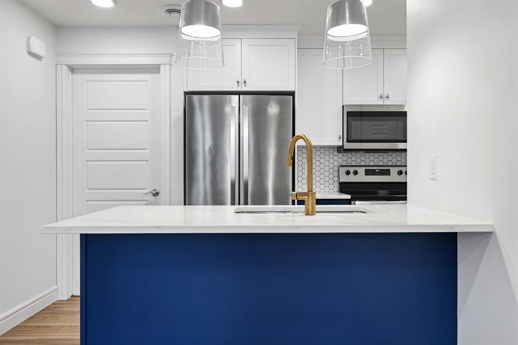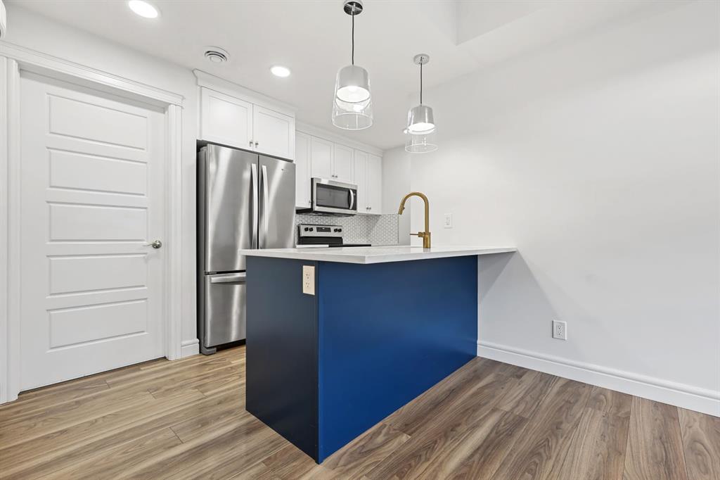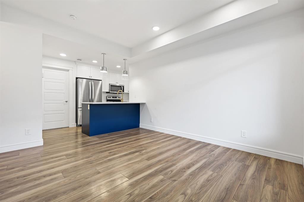 Quiet Location and Parking for 2 cars with this unit! Attached Garage and a Long driveway like this one are hard to find. This bright main floor townhome is located minutes away from the Seton YMCA and south Calgary Health Campus. The inviting bright and open floor plan offers a good size living room, well appointed Kitchen with lots of cabinets and Light coloured Quartz Countertops that are accented by modern blue cabinets. Stainless Steel appliances add to the decore and the peninsula Island offers an eating bar for your convenience. With the 4 piece Bathroom, ample size Primary Bedroom and a second bedroom/den you have lots of lifestyle choices. A Laundry area/furnace room offers so much convenience to have in your home. You can enjoy direct access to you insulated garage on those cold days as well! There are lots of shops, restaurants and amenities within walking distance and you have excellent access to major roads. Do not miss your chance too get this property.