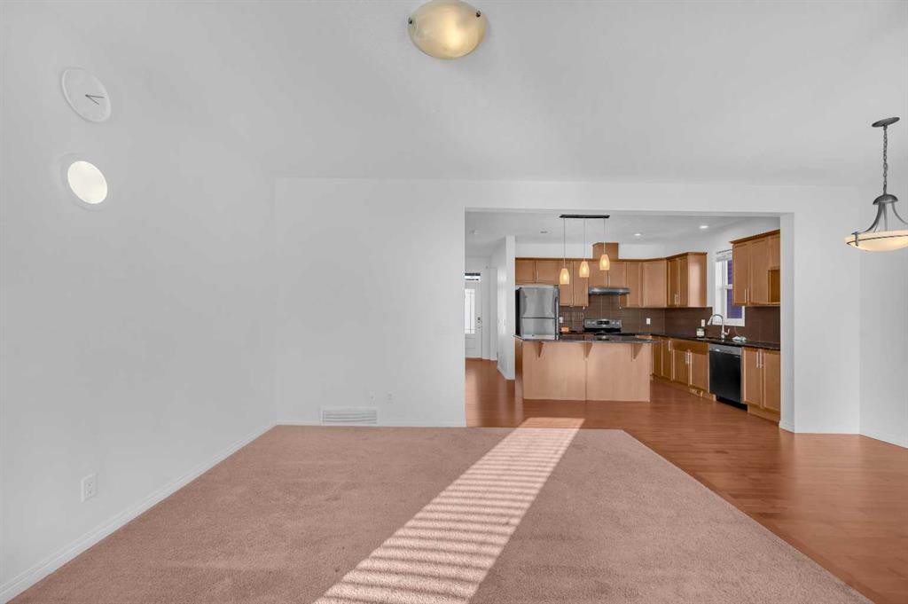 Welcome home to a bright and inviting two-storey with great curb appeal and a sunny, fenced backyard. The main floor has an easy, open layout with hardwood floors, big windows, and a roomy kitchen with long granite counters, an oversized island with pendant lights, tile backsplash, and stainless steel appliances, all flowing to the dining and living areas for relaxed everyday living and easy entertaining. Upstairs you’ll find a comfortable primary bedroom with a walk-in closet and full ensuite, two more good-sized bedrooms, a second full bath, and the convenience of upper-level laundry with Samsung front-load machines. Step outside to a huge rear deck perfect for BBQs and summer evenings, while the covered front entry and stone details add a polished look out front. The full basement has large windows and rough-ins, giving you plenty of room to grow. The location seals the deal: just steps to a playground, a shopping plaza, the bus stop, and a future school site. Move in and enjoy.