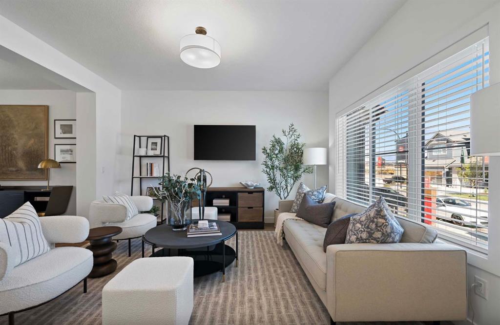 This thoughtfully designed home by Truman blends contemporary style with quality finishes and attention to detail. With three bedrooms and an open-concept layout, it offers a comfortable and practical space for modern living. At the rear of the home, the kitchen is both stylish and functional—featuring full-height cabinetry, soft-close doors and drawers, quartz countertops, a stainless steel appliance package, and a spacious pantry for added storage. The main floor is enhanced by 9′ ceilings and durable LVP flooring, creating a bright, open atmosphere that flows seamlessly through the living and dining areas. Upstairs, the primary bedroom provides a peaceful retreat with a walk-in closet and a stylish 3-piece ensuite. Two additional bedrooms offer flexible space for children, guests, or a home office. A 4-piece bathroom and an upper-level laundry — equipped with a washer and dryer—add everyday convenience. The unfinished basement, with its separate side entrance, presents a blank canvas for your future plans—whether you envision a family room, home gym, or additional storage. Located in the newly established community of Lewisburg – a thoughtfully planned, family-friendly community that offers the best of both worlds: tranquility and connectivity. Surrounded by parks, green spaces, and walking paths, it encourages an active, outdoor lifestyle. Photo gallery of similar home*