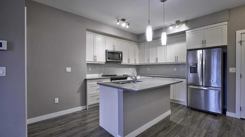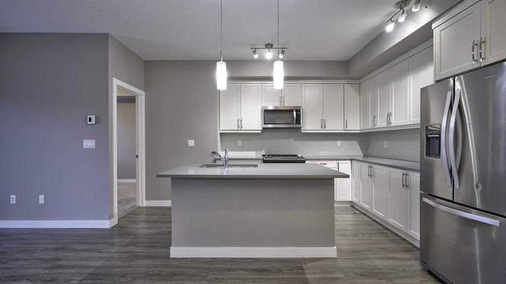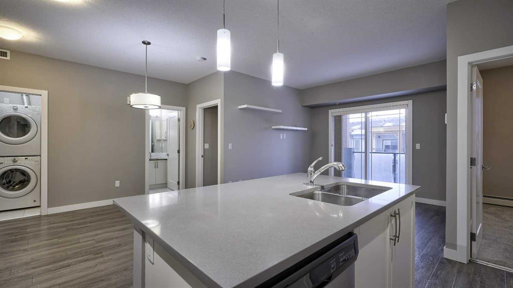 Available Immediately. Top-floor 2-bedroom, 2-bathroom unit in the highly sought-after Auburn Bay Lake Community — a rare opportunity to enjoy true privacy with no neighbours above you. This bright and inviting home features a large east-facing balcony that extends your outdoor seasons and fills the interior with morning light. From the moment you walk in, you’ll appreciate the 9 ft ceilings and abundant natural light that create a spacious, airy atmosphere. The open-concept layout easily accommodates a full dining table and is ideal for both everyday living and entertaining. The kitchen is a chef’s delight, featuring gleaming white cabinetry, stainless steel appliances, stone countertops, a designer tile backsplash, and a generous island perfect for meal prep and casual dining. The primary bedroom is a serene retreat with a walk-in closet and a well-appointed ensuite offering dual sinks and an easy-access shower — ideal for those seeking comfort and convenience while downsizing. The second bedroom is impressively large and positioned on the opposite side of the unit, providing excellent privacy for guests or family members. A full second bathroom with a bathtub and in-suite laundry add to the functionality of this well-designed floor plan. You’ll love the security and convenience of underground heated parking and an additional storage locker. The building’s contemporary architecture and clean design enhance the overall appeal. As an Auburn Bay resident, you’ll enjoy year-round lake access included through HOA fees. The lake offers swimming, fishing, paddleboarding, skating, and a wide range of adult and youth programs. Additional community amenities include tennis courts, picnic shelters, a gymnasium, and even a disc golf course. The location is exceptional — just one block from everyday essentials and fitness options in Auburn Station, and only minutes to Seton’s vibrant Gateway Retail District featuring restaurants, major retailers, Superstore, Cineplex VIP Cinemas, the South Health Campus, YMCA, and the public library. Plus, you’ll appreciate easy access to schools, public transit, and major routes such as 52nd Street, Stoney Trail, and Deerfoot Trail. The Auburn off-leash dog park is also just a short drive away.