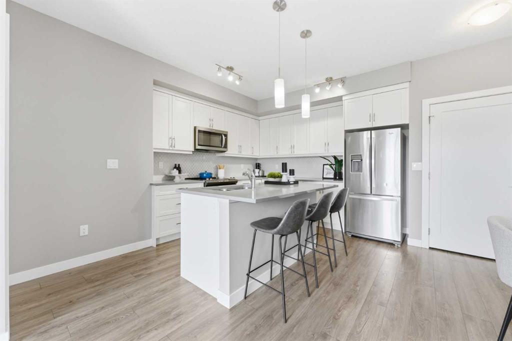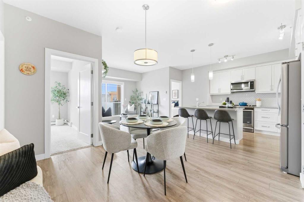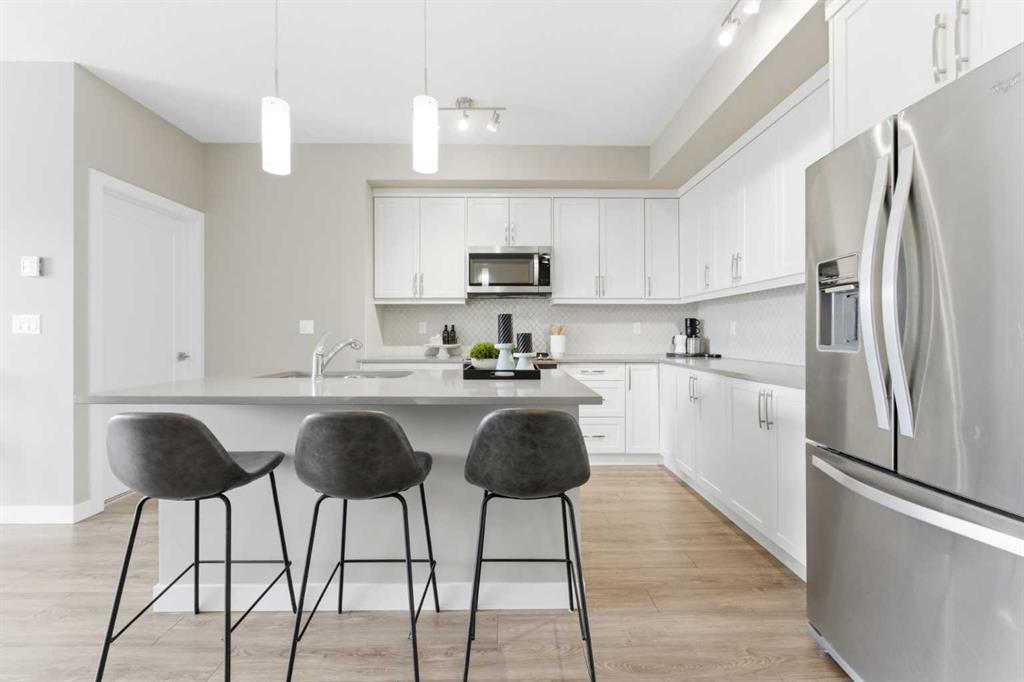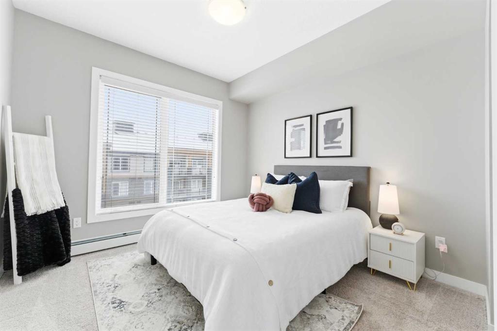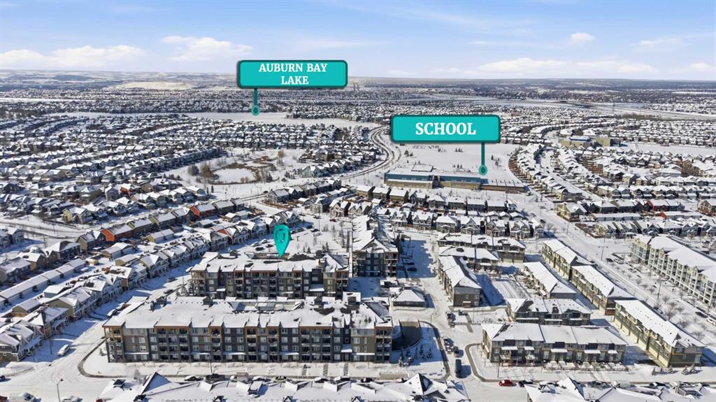 Available Immediately. TOP FLOOR 2-bedroom, 2-bathroom unit in the highly sought-after Auburn Bay Lake Community — a rare opportunity to enjoy true privacy with no neighbours above you. This bright and inviting home features a EXTRA large east-facing balcony that extends your outdoor seasons and fills the interior with morning light. From the moment you walk in, you’ll appreciate the 9 ft ceilings and abundant natural light that create a spacious, airy atmosphere. The open-concept layout easily accommodates a full dining table and is ideal for both everyday living and entertaining. The kitchen is a chef’s delight, featuring gleaming white cabinetry, stainless steel appliances, stone countertops, a designer tile backsplash, and a generous island perfect for meal prep and casual dining. The primary bedroom is a serene retreat with a walk-in closet and a well-appointed ensuite offering dual sinks and an easy-access shower — ideal for those seeking comfort and convenience while downsizing. The second bedroom is impressively large and positioned on the opposite side of the unit, providing excellent privacy for guests or family members. A full second bathroom with a bathtub and in-suite laundry add to the functionality of this well-designed floor plan. You’ll love the security and convenience of underground heated parking and an additional storage locker. The building’s contemporary architecture and clean design enhance the overall appeal. As an Auburn Bay resident, you’ll enjoy year-round lake access included through HOA fees. The lake offers swimming, fishing, paddleboarding, skating, and a wide range of adult and youth programs. Additional community amenities include tennis courts, picnic shelters, a gymnasium, and even a disc golf course. The location is exceptional — just one block from everyday essentials and fitness options in Auburn Station, and only minutes to Seton’s vibrant Gateway Retail District featuring restaurants, major retailers, Superstore, Cineplex VIP Cinemas, the South Health Campus, YMCA, and the public library. Plus, you’ll appreciate easy access to schools, public transit, and major routes such as 52nd Street, Stoney Trail, and Deerfoot Trail. The Auburn off-leash dog park is also just a short drive away. Don’t miss your chance to own in this vibrant lake community. Book your private showing today and make this stunning top-floor home yours.