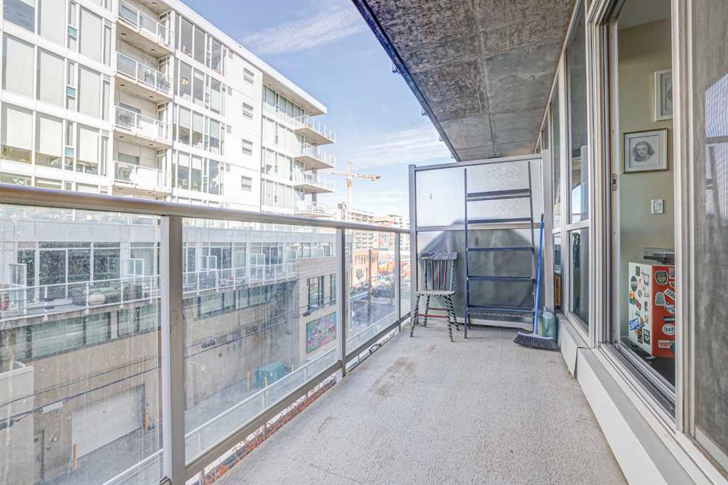 Contemporary comfort and exceptional inner-city convenience come together in this west-facing 1 bedroom + den unit in Pixel by Battistella, ideally positioned in the heart of Sunnyside. Pride of ownership is evident throughout as this original owner home has been meticulously maintained, offering both style and functionality in a highly walkable location. Polished concrete flooring introduces a contemporary aesthetic while delivering durability and low-maintenance everyday living. An open concept layout creates natural flow between spaces, centred around a dining area that connects seamlessly to both kitchen and living zones. Culinary creativity is supported by a well-appointed kitchen featuring quartz countertops, full-height cabinetry, stainless steel appliances and a peninsula island that encourages casual dining and conversation. An expansive built-in workstation provides exceptional flexibility for working from home, creative pursuits or organized daily living, offering more surface area than typically found in comparable units. Floor-to-ceiling windows span the living room, drawing in natural light throughout the day while creating a seamless transition to the full-width west-facing balcony complete with a gas line for barbeques and space to unwind outdoors. A larger primary bedroom easily accommodates a king-sized bed while oversized windows enhance both light and comfort. Dual walk-through closets enable excellent storage and connect directly to the 4-piece bathroom for added convenience. A versatile den delivers additional flexibility for a home office, hobby space or extra storage depending on your needs. Comfort is elevated with 2 wall-mounted air conditioning units, one in the living room and one in the bedroom, ensuring a cool retreat during warmer months. In-suite laundry adds everyday ease while titled parking and an exceptionally large titled storage locker on P2, one of only 2 of its size in the building, provide rare and valuable additional space. Residents enjoy access to a stunning rooftop terrace designed for connection and relaxation, complete with fireplaces, lounge areas and panoramic views of the city skyline and Bow River. A pet-friendly building further enhances lifestyle flexibility. Daily life unfolds effortlessly with Safeway and the LRT station just 1 block away, while Kensington’s shops, restaurants and cafes are moments from your door. Pathways along the Bow River and Prince’s Island Park invite outdoor recreation while the downtown core remains within easy walking distance, supporting a vibrant and connected urban lifestyle. Truly an exceptional home in an unbeatable, extremely walkable location!