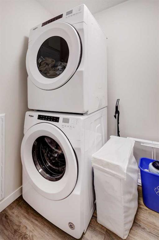 The thoughtfully designed open-concept layout features quartz countertops and tile backsplashes in both the kitchen and bathrooms, stainless steel appliances, and a separate laundry room with stacked washer and dryer. Large rooms, LVP flooring throughout, and abundant storage enhance everyday comfort.