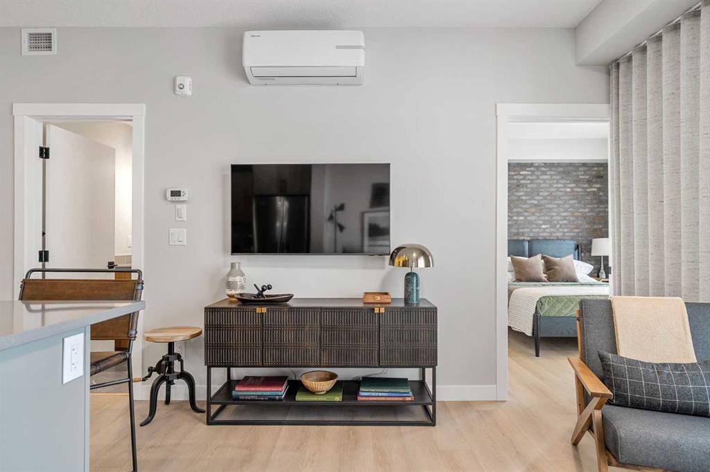 Welcome to the Brylee by Partners Homes, a thoughtfully designed 2 bedroom, 2 bathroom main floor condo in Okotoks, located in the sought after community of Lawrie Park at Wedderburn. Offering 744 sq ft of well planned living space, this new construction condo combines a functional layout, modern finishes, and full new home warranty, making it an ideal option for first time buyers or downsizers seeking low maintenance living in Okotoks. The bright open concept layout features knockdown ceilings, full height kitchen cabinetry, an upgraded backsplash, and added drawers for enhanced storage and everyday functionality. The kitchen is designed with efficiency in mind, offering generous counter space and a practical flow for both daily use and entertaining. A complete stainless steel appliance package is included, featuring an upgraded fridge and upgraded range. A dedicated laundry room with stacked washer and dryer adds convenience while keeping the main living space organized. The primary bedroom includes a private ensuite with a walk in shower and pot light, while the second bedroom and full bathroom provide flexibility for guests, roommates, or a home office setup. Additional upgrades include full air conditioning, a gas line, a raised outlet in the living room for a wall mounted TV, and an additional pot light in the shared bathroom. The north facing exposure helps maintain a consistent and comfortable temperature throughout the year. This pet friendly condo offers low condo fees and is located directly across from a dog park, making it a great option for pet owners. Lawrie Park at Wedderburn is a well planned Okotoks community with walking paths, green spaces, playgrounds, and mountain views. Located just 15 minutes south of Calgary, this home is steps from D’Arcy Crossing with convenient access to Safeway, Starbucks, Shoppers Drug Mart, and other everyday amenities. A new K to 9 school is also located nearby. An excellent opportunity to own a modern condo in Okotoks with a functional layout, upgraded finishes, and a well connected location.