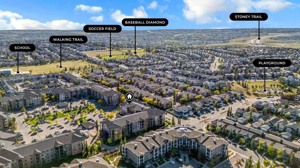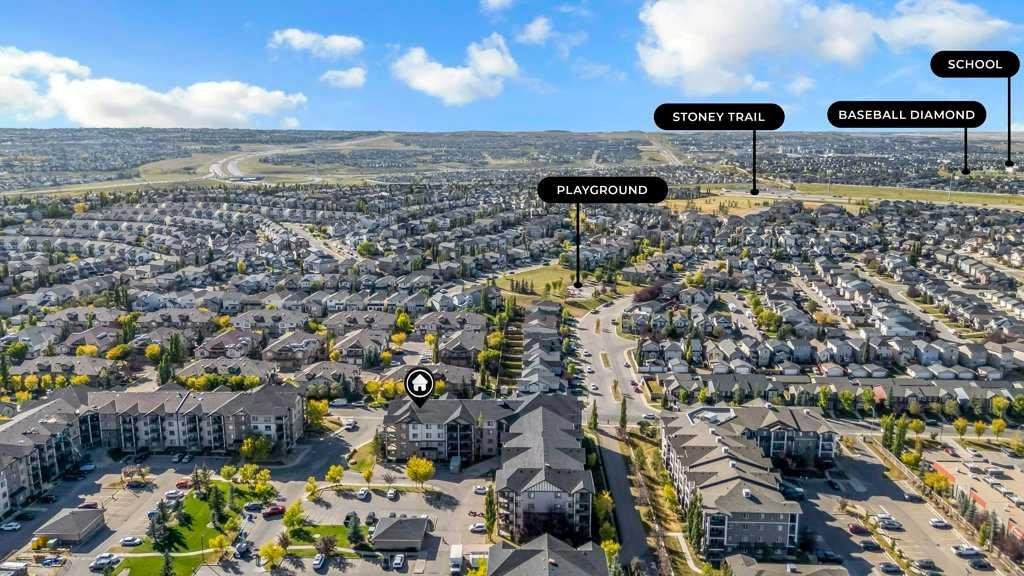 Welcome to this charming 2-bedroom, 2-bathroom corner unit condo located in the peaceful Panorama Hills community. This spacious ground-floor unit offers 974 square feet of comfortable living space and features a private southwest-facing balcony entrance. Step inside to discover a bright, open-concept layout enhanced by fresh paint and new carpeting throughout.
