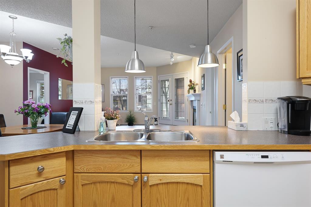 An exceptional opportunity to live in this bright and spacious 1188 Sq Ft outside corner unit, which features a large 20Ft x 8Ft covered patio with a natural gas Bar-B-Q included. This amazing condo features 2 bedrooms, 2 full bathrooms, a convenient den/hobby room, and caps it off with a laundry room as well! A Heated underground parking stall, storage unit, and heated visitor parking makes everyone happy! This unit welcomes you in with warm rich looking Vinyl Plank upgraded flooring. A spacious living room offers lots of windows and the comfort of a gas fireplace to keep you warm and cozy on those winter nights. Enjoy a light oak kitchen with ample cabinets, a sit up eating bar and a wonderful large pantry. With a nice size foyer, High Ceilings and in suite laundry, you have all you need in this condo. You have access to your deck from the bedrooms or the living room! Beacon Hill is a vibrant community with regular social activities including the amenity and games rooms, exercise rooms, carpentry shop and 2 guest suites. Don’t miss a Car wash too! The location is well connected to nature, pathways, LRT station, and major routes to Shopping, restaurants and many professional services. A wonderful place to call home!