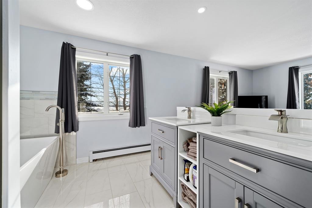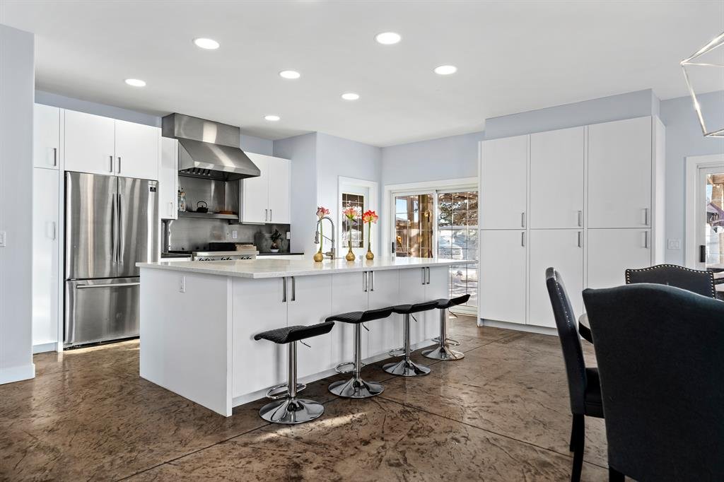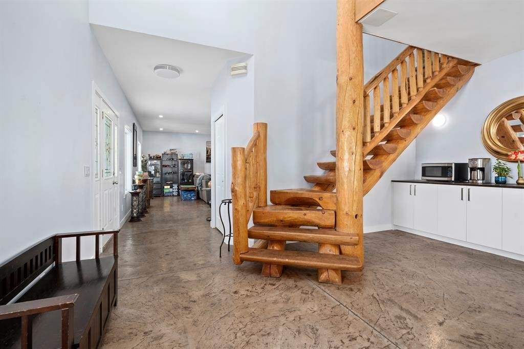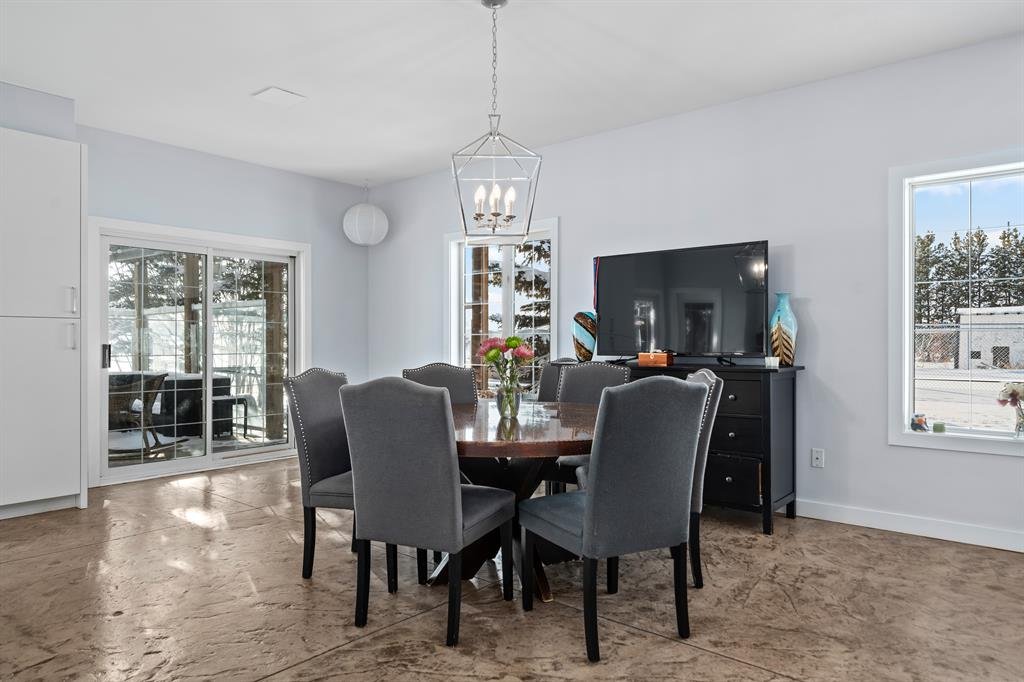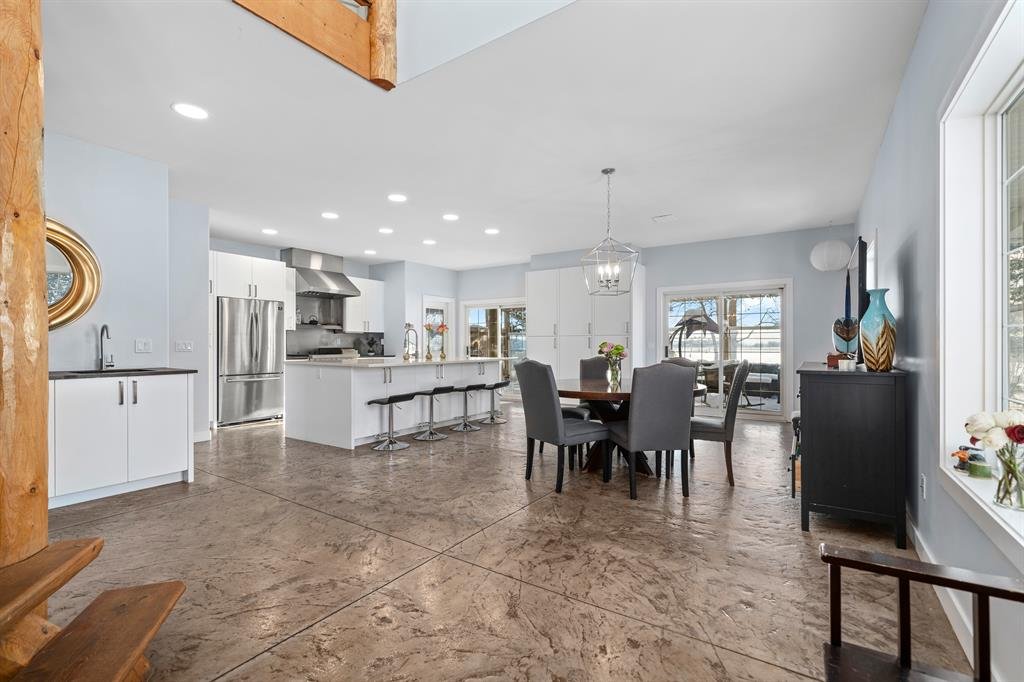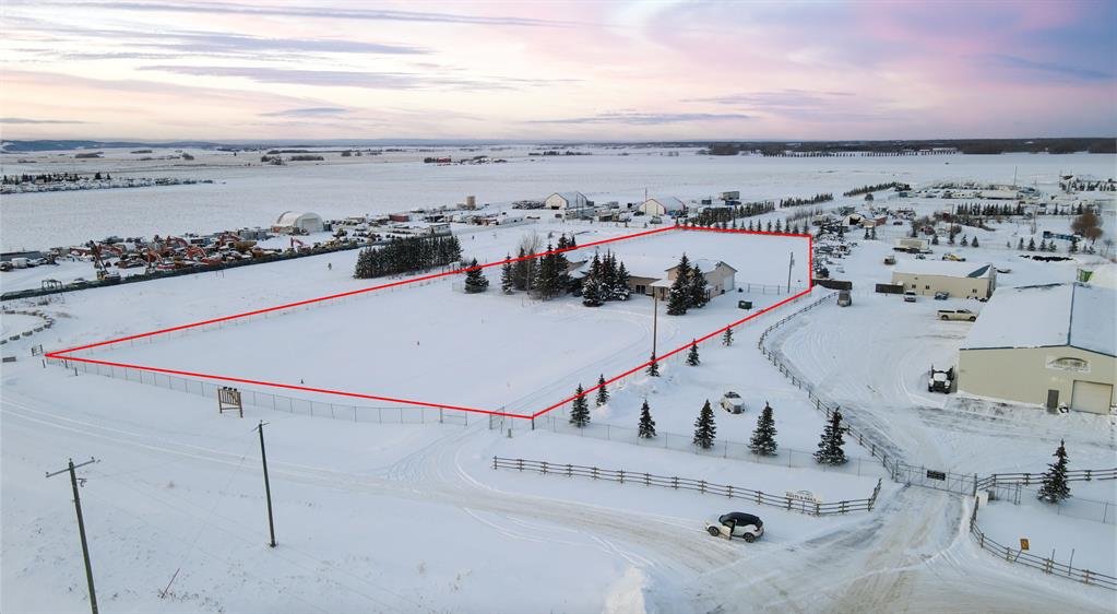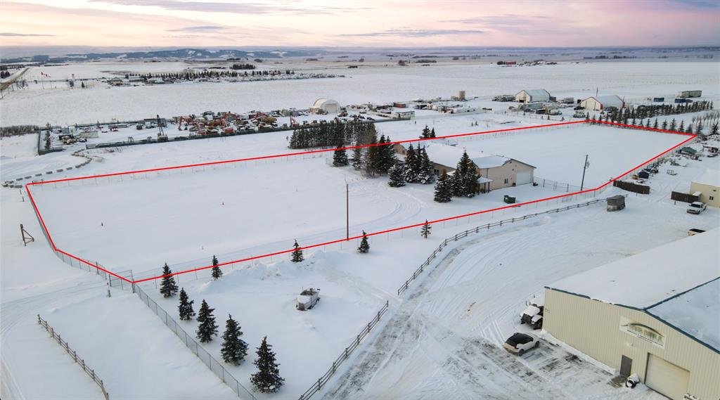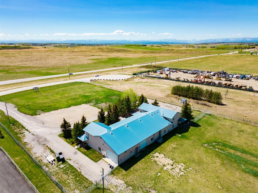 RARE LIVE/WORK OPPORTUNITY WITH EXCELLENT ROAD EXPOSURE FOR YOUR BUSINESS! 3.35 ACRES, ZONED C-HWY (MIXED USE, SEE SUPPLEMENTS FOR DETAILS). This one-of-a-kind property is located 10 minutes north of Cochrane (HWY 22 & HWY 567) and offers a fully renovated 2751 SQ FT home with a 4169 SQ FT commercial space. The bright and open main floor features a spacious living room with office space, a cozy dining room, and a 3 piece bath/laundry all highlighted by gorgeous stamped concrete floors. The luxurious chef’s kitchen offers quartz countertops, a spacious island/breakfast bar, a coffee station with a second sink, ample cabinet space, and high-end appliances – perfect for entertaining and the at-home gourmet. Upstairs, relax in the primary retreat which includes an upscale 5-piece ensuite (relaxing soaker tub, stand-up shower, double sinks), a large walk-in closet, and views of the Rocky Mountains. Completing the upstairs are 3 additional bedrooms, a 4 piece bathroom, and plenty of storage. You will fall in love with the oversized (49’2″ x 21’2″ 0), heated/insulated garage where you could easily park 6 vehicles/toys – perfect for a home mechanic, car enthusiast, or tradesperson. The commercial space offers a huge showroom, front desk, office, 2 bathrooms, loft/office, and additional garage. This space is ideal for any entrepreneur or established business. Other features included a custom log wood staircase, a large patio, new chain link fencing & amazing views. Ideally located just minutes from Cochrane and a short commute to Calgary this property offers huge potential and would be hard to recreate. Please reach out for more details and to arrange a private viewing. *** RESIDENTIAL – 2751 SQ FT, COMMERCIAL – 4169 SQ FT. ***