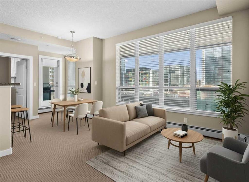 Urban convenience and everyday comfort come together in this well-designed condo located in the HEART OF THE BELTLINE, just steps from shopping, dining, transit and endless amenities. A private entryway introduces a welcoming first impression while adding separation from the main living space. Thoughtful layout reveals an oversized 1 bedroom plus flex room configuration that adapts easily to both daily routines and work-from-home needs. Natural light pours through large WEST-FACING WINDOWS, filling the open-concept main area with warmth throughout the day. GRANITE COUNTERTOPS, STAINLESS STEEL APPLIANCES and expansive prep surfaces define the kitchen, where a peninsula island with raised eat-up bar invites casual meals and easy connection. Effortless transition leads into the living and dining areas, making gatherings feel comfortable and unforced. A well-positioned FLEX SPACE functions seamlessly as a home office, reading area or added storage depending on your lifestyle. Direct access from the bedroom into the 4-piece bath through a cheater ensuite layout enhances both privacy and convenience. IN-SUITE LAUNDRY remains neatly tucked away, keeping day-to-day organization simple and out of sight. Outdoor time feels elevated on the west-facing balcony complete with a GAS BBQ LINE, creating the perfect place to unwind while taking in CITY VIEWS and evening sun. TITLED UNDERGROUND PARKING ensures secure, year-round convenience. Residents enjoy access to a RENOVATED GYM AND 24/7 CONCIERGE service, contributing to a low-maintenance lifestyle with added peace of mind. Immediate proximity to the LRT simplifies commuting, while nearby shops, restaurants and services place everything within easy reach. This is a truly outstanding opportunity to invest in a well-located home that balances function, comfort and connected inner-city living.