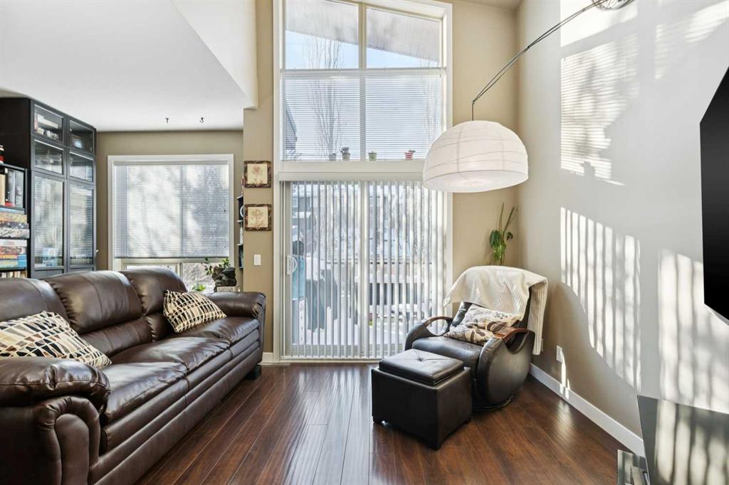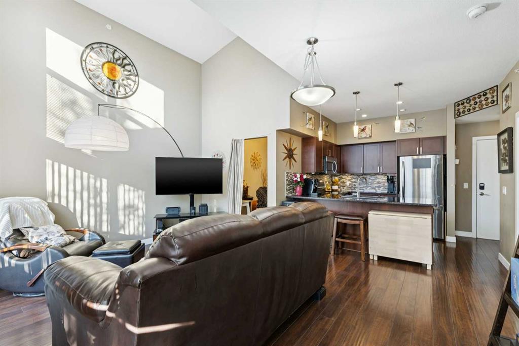 Welcome to Stonecroft Highland Park. Situated on the top floor this single bedroom + den unit features 15ft vaulted ceilings providing a ton of natural light – rare for apartment style condos. Combined with large windows, the height and design create an open, light-filled space that immediately stands out. The functional layout offers thoughtfully designed living throughout. The chefs style kitchen provides excellent cabinet and counter space, complete with granite countertops, stainless steel appliances, and a functional breakfast bar. The primary bedroom is spacious and bright, with large windows and his and hers closets for added storage and organization. A generous 4 piece bathroom and versatile den offer flexibility for a home office, guest area, or additional living space. Additional features include a stacked in-suite washer and dryer, private patio, heated underground parking stall, and separate storage locker. Overall this unit shows pride of ownership throughout! Condo fees include heat and water. The building is well cared for and offers a social room and lots of covered visitor parking. Located on a quiet street next to an off-leash dog park, it provides convenient access to Deerfoot Trail, Centre Street, nearby shops, amenities, and downtown by public transit. An excellent opportunity for comfortable living in a desirable and convenient location. Top floor units in this building don’t last long so be sure to schedule your tour before its gone!