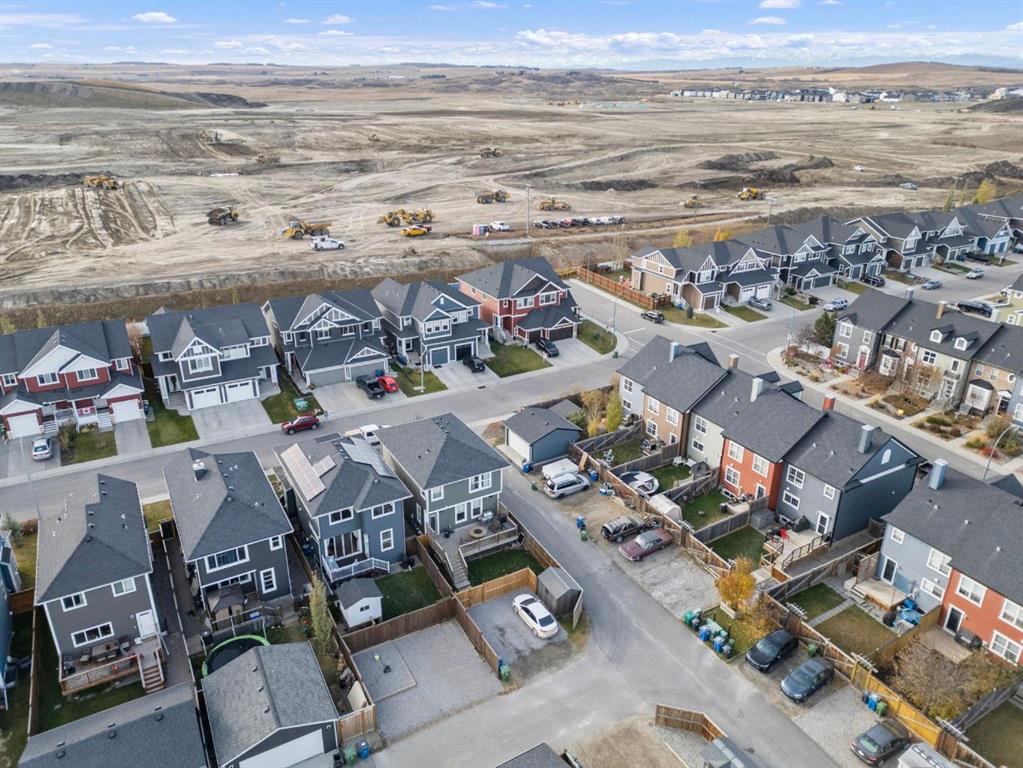 Welcome to 411 River Heights Crescent, a beautifully appointed home where timeless design meets modern sustainability. Thoughtfully designed with high ceilings, expansive windows, and a naturally flowing floor plan, this residence offers a perfect blend of light, space, and comfort. The main level features a bright and open living area anchored by a striking stone-surround gas fireplace and framed by large south-facing windows. The elegant kitchen is a true centerpiece showcasing timeless white cabinetry, a farmhouse sink, quartz countertops, hidden microwave, and a large uninterrupted island ideal for baking, entertaining, or family meals. Hardwood floating shelves add warmth and charm, while a 3rd rack dishwasher and spacious pantry enhance everyday functionality. Upstairs, the primary suite is a tranquil retreat with oversized windows, a large walk-in closet, and a spa-inspired ensuite with large vanity with generous storage, and a relaxing corner tub. Two additional bedrooms and a full bathroom with a large vanity complete the upper level. The fully developed basement extends the living space with a large, versatile recreation area perfect for hobbies, fitness, or family movie nights along with an additional bedroom and tons of storage space. This home stands apart with its professionally installed 7.36 kW Net Zero Solar System, designed for peak efficiency and long-term savings – generating over 40,900 kWh of energy in its first 5 years. Over its lifetime it will offset 151,000 lbs of coal; this system delivers near net-zero electricity costs averaging under $100/month for a family of six. Environmentally, it’s equivalent to planting 3,600+ trees or removing a vehicle from the road each year. Outside, the beautifully landscaped yard features raised garden beds, established perennials, and both north- and south-facing outdoor living spaces, a sunny front veranda and a private back deck off the dining room that has double sliding doors to extend the space naturally for summer gatherings. It has a great size yard with a playhouse for the kids to enjoy. Located in a quiet, low-traffic section of River Heights Crescent, this home offers quick access to parks, playgrounds, schools, and walking paths, with easy routes to downtown Cochrane and Calgary. It’s a rare opportunity to enjoy timeless craftsmanship, a smart layout, and modern energy independence all in one remarkable home.