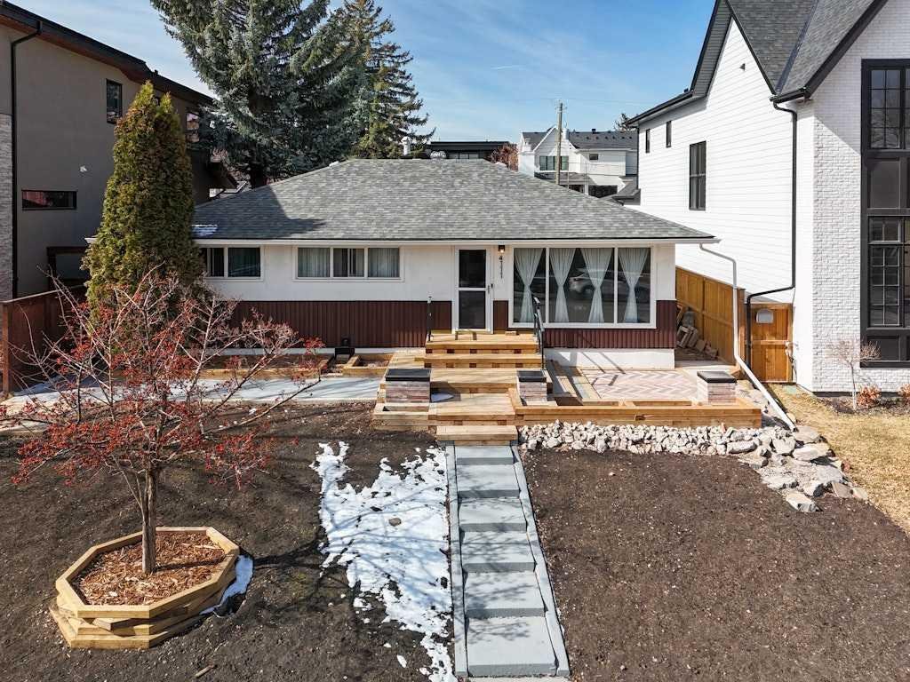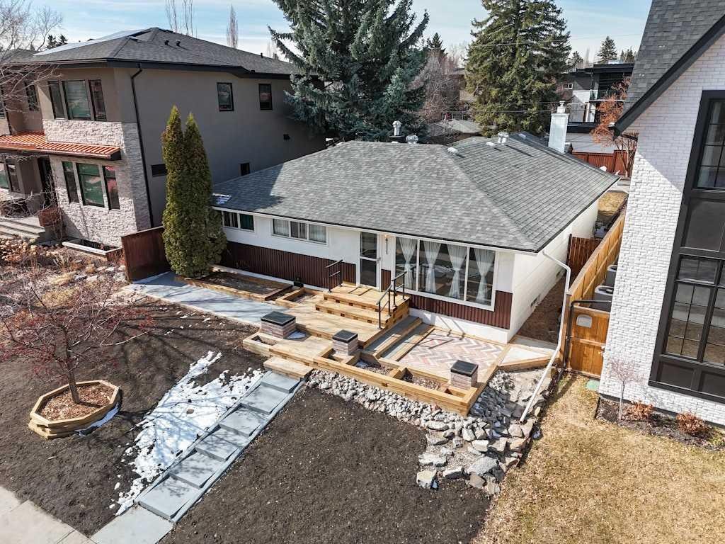 Build, renovate, or move in to enjoy. Make sure to book your showing before it’s too late. The location is fantastic for walkability and in only minutes you could be at dog walking at River Park off-leash, picnicking at Sandy Beach, grabbing a coffee or bite at Neighbour Coffee, Monogram Coffee, or Le Comptoir, and no need to drive and deal with the construction, but enjoy the fruits of those at DOPO, Penny Crown, Avitus Wine Bar, the Trop as well as the ease of all other amazing amenities in Marda Loop. The historical zoning on this street, along with those immediately surrounding it, was R1 which has preserved lower density in the area. The orientation of the lot is extremely desirable with 50ft frontage, 125ft depth, slight front-to-back elevation, west facing backyard, paved alleyway and situated between two stunning luxury homes. For those who aren’t looking to build right away the home’s original owners expanded the above grade square footage of this home by building an addition onto the back, adding roughly 500sqft setting this home apart from the traditional bungalows built in the 1950’s. The addition also adds an element of character and comfort as well as lends to more flexibility should a buyer decide to do an extensive renovation. The oversized double garage and rear parking pad will also assist in that endeavour. There have only been two owners of this home since it was built over 70 years ago and has never been used as a rental. Pride of ownership is evident throughout the property. The home has been upgraded to retain the quality building materials used at the time, but blended with current conveniences and styled in a modern way. The at grade access to the backyard make the deck and patio feel like an extension of the home. If you’ve been looking for something unique in the cherished community of Altadore, here is your opportunity!