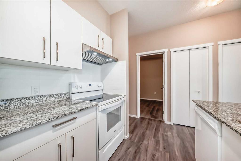 Welcome to this charming 701.7 square feet ground-floor apartment in the heart of Skyview Ranch NE, where comfort meets convenience in a vibrant community setting. This unique unit offers not one, but two entrances—one through the main building and another private entrance that opens to your own patio and the outdoors, perfect for enjoying fresh air and easy access to nearby paths. Step inside to a thoughtful and inviting floor plan. As you enter, a 4-piece bathroom sits conveniently to your right. The hallway leads you into a functional kitchen that flows seamlessly into a bright and open living area—ideal for both everyday living and entertaining. On your left, you’ll find two well-sized bedrooms filled with natural light, along with your very own laundry room for added ease. The patio extends your living space outdoors, offering direct access to scenic walking and bike paths—perfect for morning jogs, evening strolls, or weekend rides. This unit comes with one underground, titled parking which adds convenience, security, and everyday comfort. Freshly painted and with its brand new luxury vinyl plank flooring, this apartment is move-in ready and designed to impress. Living in Skyview Ranch means being just steps away from everything. With shopping, dining, and major roadways nearby, you’ll enjoy both the tranquility of a welcoming neighborhood and the convenience of city access. This home is more than just a place to live—it’s a lifestyle. Book your showing appointment today and picture yourself sipping coffee on the patio, biking the community trails, and coming home to a space designed for both comfort and function.
