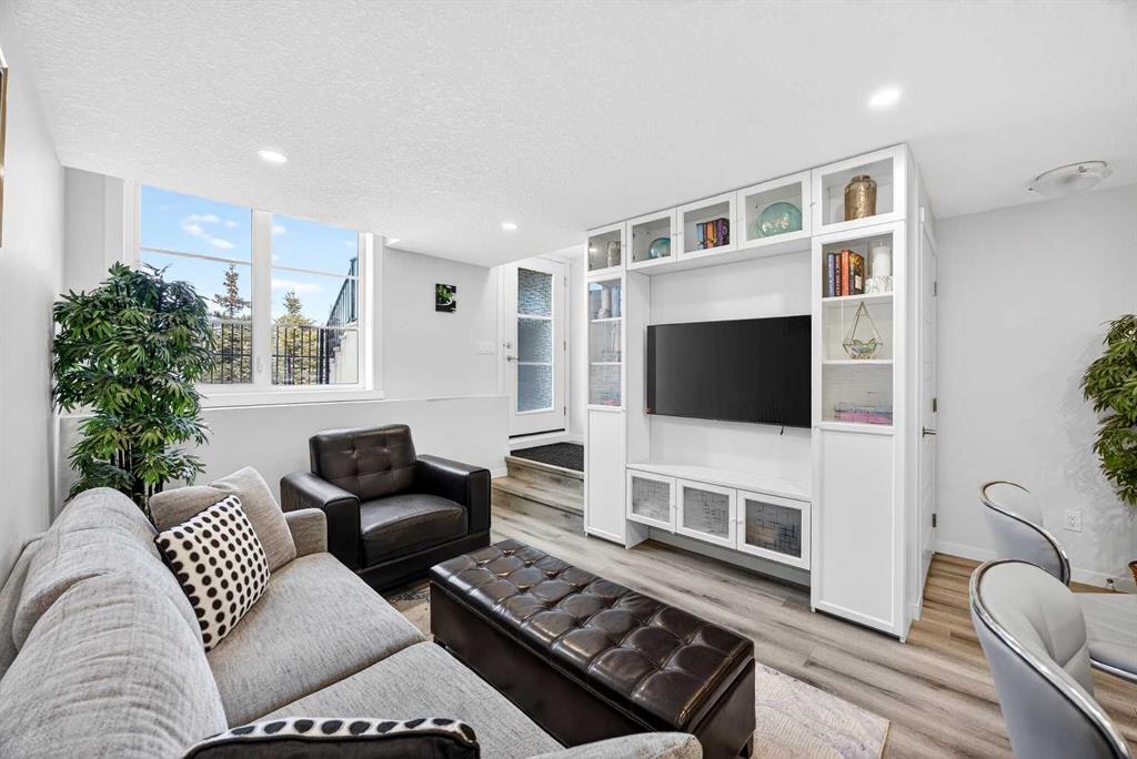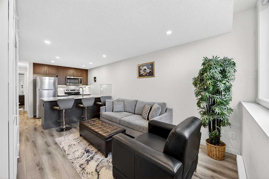 Step into modern, maintenance-free living in the vibrant community of Rockland Park. This well-designed one-bedroom, one-bathroom townhome is entirely below grade and offers approximately 516 sq. ft. of functional living space, along with a generous 178 sq. ft. patio. It’s an excellent opportunity for first-time buyers, downsizers, or investors (short-term rental/AirBnB allowed). Tucked into a quiet corner of the ZEN complex, this home enjoys a peaceful setting with scenic views toward the nearby pond, green space and serene pathways. Inside, the open-concept layout creates a comfortable flow between the living area and kitchen, maximizing every square foot. The kitchen is both stylish and practical, complete with full-size stainless steel appliances, quartz countertops, sleek cabinetry, a pantry closet and a convenient eating bar. The bedroom is bright and efficiently laid out, featuring his-and-hers closets, while the four-piece bathroom is finished with matching quartz surfaces. In-suite laundry with a full-size washer and dryer adds everyday convenience. This unit also includes durable laminate flooring throughout, recessed lighting, a private front gated patio for fresh air, and an assigned powered parking stall. Its main-floor entrance level offers easy access with minimal stairs. Located just steps from walking paths and the community pond, and close to the residents’ centre with planned amenities such as an outdoor pool, hot tub, pickleball/basketball courts and child care. This home is perfectly positioned to enjoy everything Rockland Park has to offer. With quick connections to major routes like Stoney Trail, Crowchild Trail, and the Trans-Canada Highway, commuting and weekend getaways are effortless. A fantastic opportunity to own in a growing northwest community—don’t miss it.
