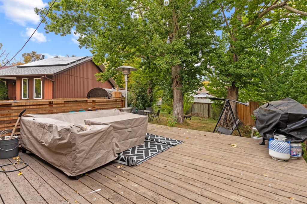 The layout is functional and inviting, with laminate flooring, large windows, and plenty of natural light throughout. Outside, you’ll find a private fenced yard, a deck for outdoor entertaining, and a parking pad for two vehicles.