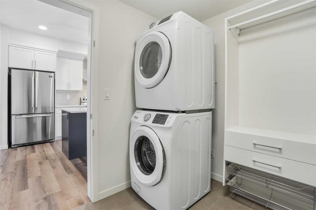 Available for immediate possession! Don’t miss your opportunity to own this BRIGHT, TOP FLOOR CONDO featuring stylish vinyl flooring, upgraded finishes, AC, and custom California Closets! The beautifully upgraded kitchen features quartz countertops, stainless steel appliances, large undermount farmhouse sink, full pantry, and an island with a UNIQUE 2-SIDED BREAKFAST BAR that offers table-style dining rare for this type of condo! The primary bedroom is complete with a customized walk-in closet! A full bath serves the primary bedroom and guests. You’ll love the extra storage space and custom shelving in the spacious laundry room! This unit comes with 2 titled parking spaces (one underground, one above ground stall) and a convenient assigned storage locker. Just steps to many community parks, ponds, tennis courts, and playgrounds, and a short drive to The Golf Centre at Harvest Hills. This great location will have you driving just 10 minutes to the Calgary Airport, 20 minutes to downtown, and 5 minutes to the Stoney Trail ring road.