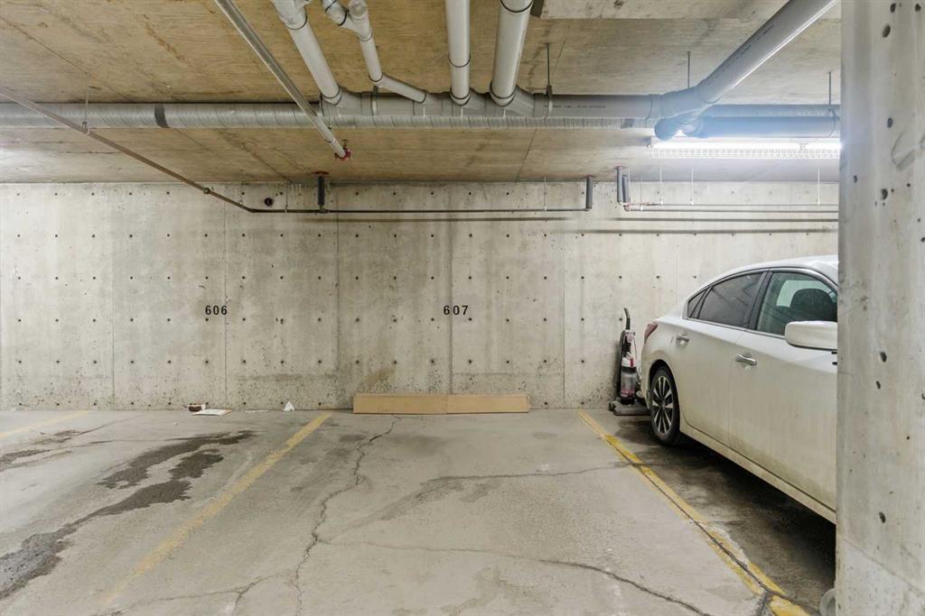 This bright and functional unit features an open-concept layout with a modern kitchen complete with granite countertops, ample cabinetry, and plenty of workspace. The living area extends to a private south-facing balcony, offering great natural light and open views. Additional highlights include a spacious bedroom, in-suite laundry, and titled underground parking. Conveniently located near the elevator for added ease.