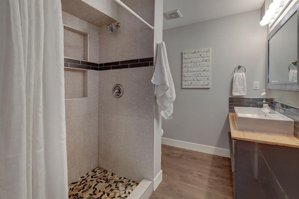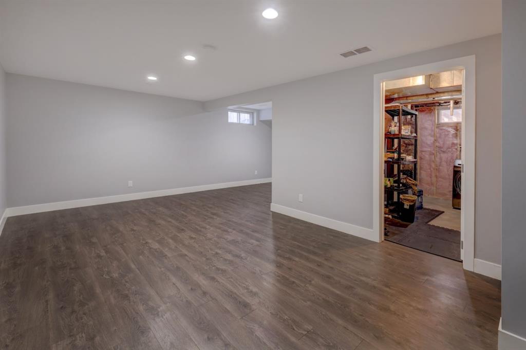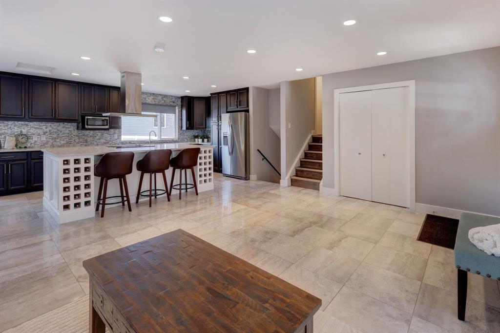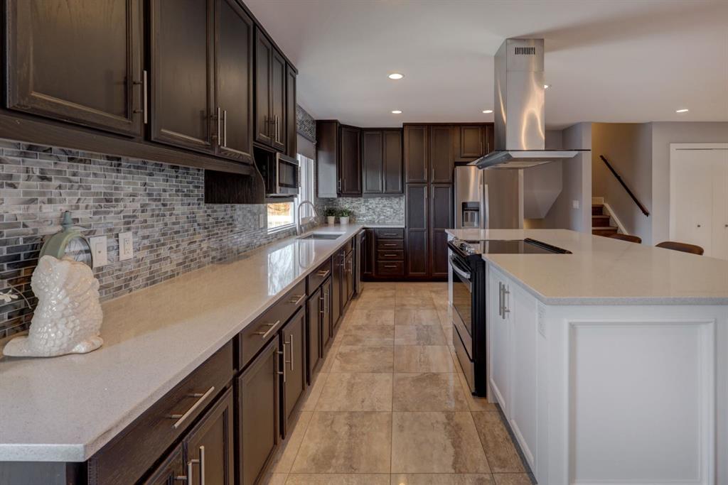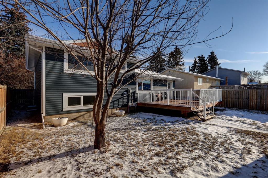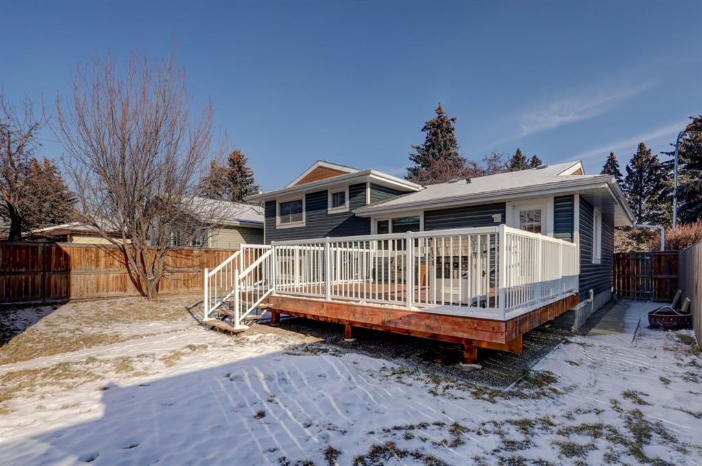 Welcome home to your gorgeous 4 LEVEL SPLIT home on a mature lot measuring over 6000 sq ft!! This home has been EXTENSIVELY RENOVATED & offers over 2100 sq ft of FULLY DEVELOPED space. As you approach the home note the concrete steps as well as the modern colors on the outside of the home – SIDING & TRIM were redone in 2019. Entering the foyer note the 18 by 18 inch upgraded tile floors & the completely OPEN CONCEPT living space. The main floor was thoughtfully re-designed to showcase a CUSTOM KITCHEN complete w/QUARTZ island that is nearly 9 FT LONG as well as 17 plus feet of QUARTZ counter tops, refinished cabinetry, 20 AMP receptacles & STAINLESS STEEL appliances. The remodelled upstairs features a large PRIMARY BEDROOM w/dual WALK-IN closets as well as 2nd/3rd bedrooms. The spa like main bath boasts glass tile surrounding the SOAKER TUB as well as a classic vanity. Venture down to the 3rd level noting large BRIGHT windows in the developed rec room. The current owner has left the room outside the 3rd level bathroom as a flex space perfect for a HOME OFFICE or DEN but this space could easily be converted to a 4th BEDROOM as the egress window is already in place. This level is completed by another SPA inspired bathroom – beautiful RIVER ROCK shower w/built in TILED ALCOVES & modern vanity w/vessel style sink. The toilets in both bathrooms are dual flush & water efficient. The 4th level is host to a large open space – ideal for a gym or possible a 5th bedroom (current window does not meet egress). There is plenty of storage on this level & the furnace was replaced in 2014 (HIGH EFFICIENCY). The sunny, WEST-FACING back yard completes this home – you can not find yards of this size in the newer areas. An OVER-SIZED DOUBLE garage is an amazing addition to the package – over 22×25 ft (measuring over 560 sq ft) w/120/240V panel as well welding receptacle & space for RV parking (including a large gate) enhances the ample outdoor living space this lot has to offer! Don’t forget the deck built in 2019, frost free taps as well as the gas line to the deck also installed in 2019 (all with permits). Other upgrades to this property include: shingles replaced in 2014, upgraded electrical panel & LVP flooring. This whole package is situated in close proximity to downtown Airdrie as well as schools, parks & more. Call today to view your new home!