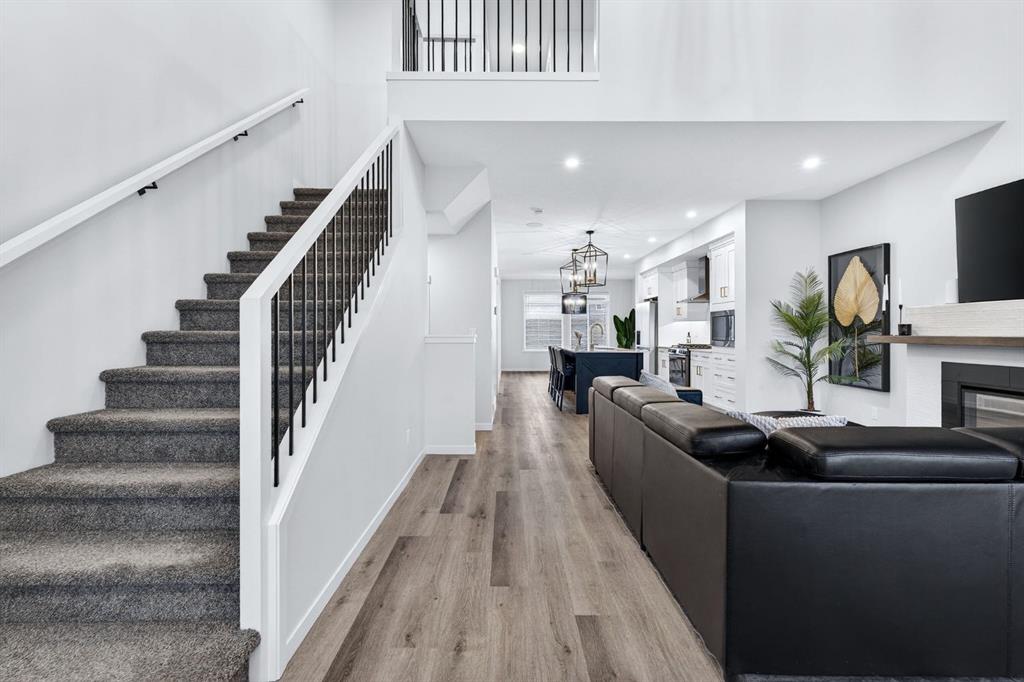 Welcome to this stunning two-storey home in the desirable community of Belmont, where elevated design, thoughtful upgrades, and an exceptional location come together seamlessly. Offering 1,669 sq ft above grade plus an additional 835 sq ft in the fully developed basement, this home delivers both style and substance. A detached double garage adds everyday convenience, while the layout has been carefully designed to maximize flow, comfort, and functionality across all three levels. From the moment you step inside, you’re greeted by soaring ceilings and an open-concept main living area that delivers an immediate wow factor. The living room is anchored by a striking modern fireplace and filled with natural light, creating a warm yet sophisticated space for relaxing or entertaining.