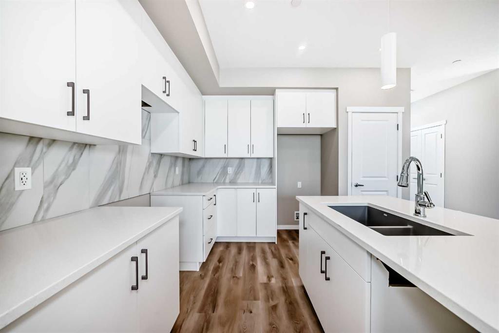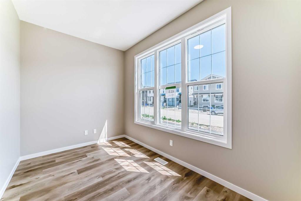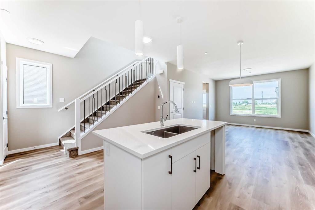 Step inside and feel right at home in the Barwell—a thoughtfully designed laned home that strikes the perfect balance between style, function, and comfort. With 1,515 sq ft of well-planned living space, this brand-new residence in the vibrant community of Hotchkiss checks all the boxes for modern family living. The main floor welcomes you with 9’ ceilings and durable luxury vinyl plank flooring throughout. A spacious front living room flows effortlessly into the heart of the home—an L-shaped kitchen featuring sleek quartz countertops, contemporary cabinetry, and a large dining area that’s perfect for gatherings. Tucked just off the kitchen is a convenient pocket office, ideal for remote work or managing your day-to-day. Upstairs, you’ll find a functional layout with three well-sized bedrooms, including a spacious primary retreat complete with a tile-to-ceiling ensuite shower that adds a touch of luxury to your daily routine. Additional features include painted spindle railings on the main level, knockdown ceiling texture, and a side entrance provides options in the future for a basement suite (A secondary suite would be subject to approval and permitting by the city/municipality) providing the perfect spot for extended family or rental income. Additionally the basement features a wet bar rough-in already in place, making it easy to plan out your dream basement. **This home also comes complete with full front and backyard landscaping, including sod, mulch on the side yards, and trees/shrubs in the front as per community guidelines. Enjoy warm summer evenings in the west-facing backyard, or take advantage of the exterior gas line for future BBQs. Whether you’re a growing family or a savvy investor, this home offers long-term value in one of Calgary’s up-and-coming communities. Hotchkiss is a new southeast Calgary community designed for those who crave space, connection, and outdoor living. With easy access to major roadways, future planned amenities, and nearby parks and pathways, it’s a neighbourhood that blends natural beauty with city convenience. Whether you’re headed to work or the mountains, Hotchkiss puts you in a prime location to live your best Calgary lifestyle.