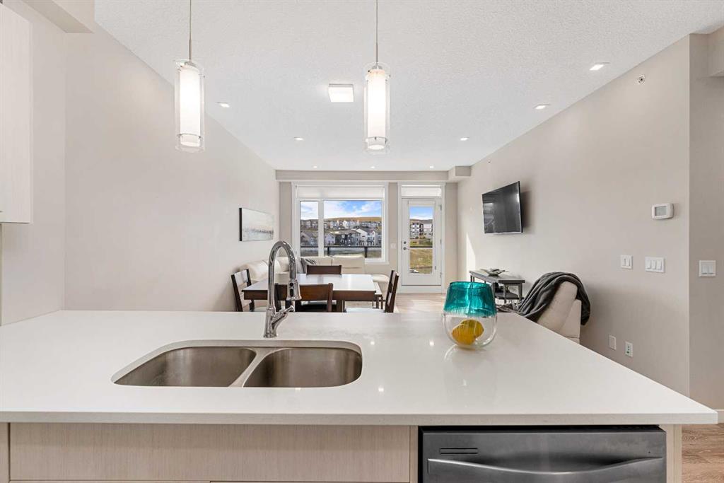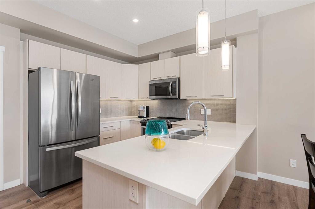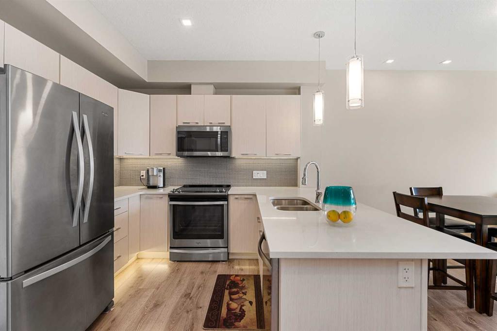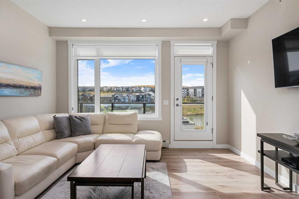 ***NEW PRICE***Welcome to this stunning 2-bedroom, 2-bathroom top floor condo offering style, comfort and convenience. Rarely available, this home includes three parking stalls-one underground and two outdoor. Step inside to an open and modern layout featuring a designer kitchen with quartz countertops, sleek cabinetry with LED tape lights, and stainless steel appliances. The soaring high ceilings with custom pot lighting create an elegant ambience while the luxury vinyl plank flooring adds a touch of sophistication. Enjoy the breathtaking views of Sherwood Square Lake from your private balcony (BBQ gas-line) -the perfect spot to relax and unwind. Both bedrooms are generously sized . with the primary suite offering a walkthrough closet and a full en-suite bathroom (standing shower) for added privacy. This beautiful condo combines modern finishes with everyday functionality, making it ideal for homeowners and investors alike. Great Location, Great Unit , Great Opportunity!