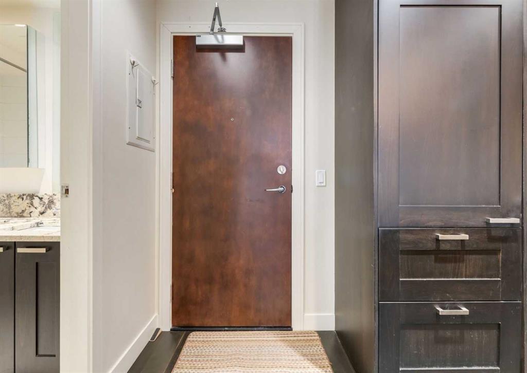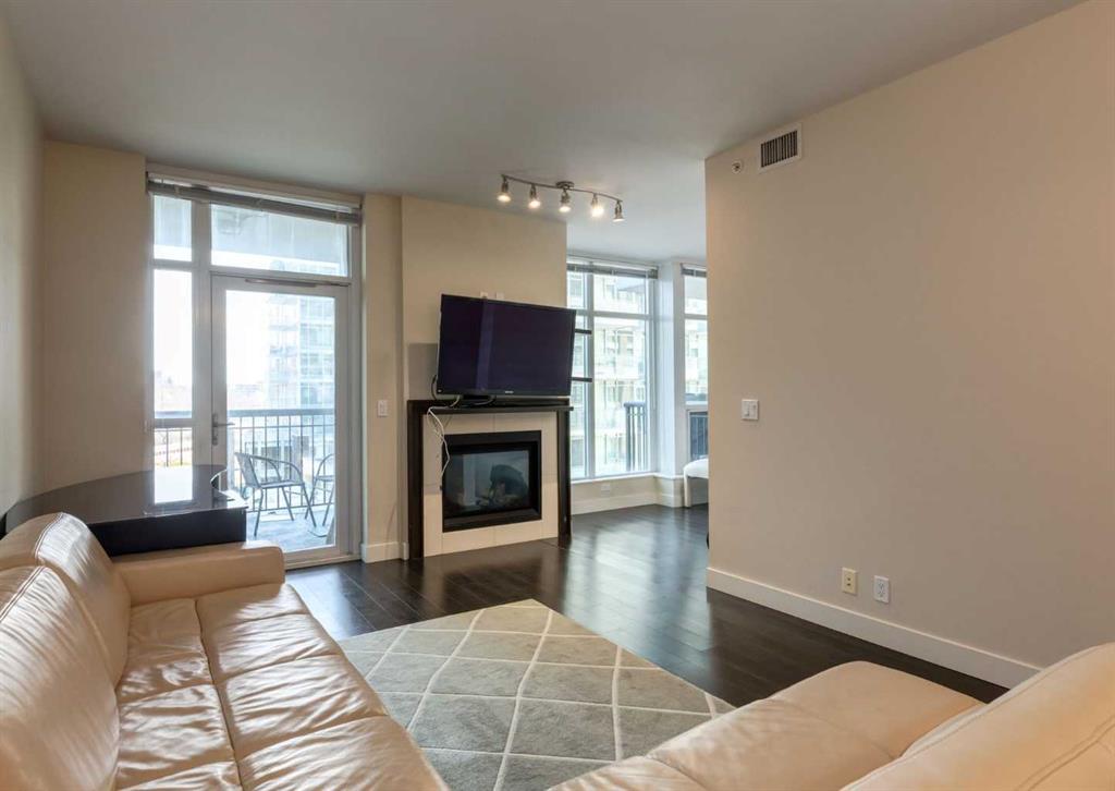 Welcome to Waterfront! Situated just steps away from Princes Island Park, Bow River pathways, Chinatown and minutes from the downtown core, restaurants, shopping and much more. This 1 bedroom + den end unit condo features just under 9ft ceilings, hardwood, tile and carpet flooring. A beautiful kitchen with quartz countertops, stainless steel appliances including built in Sub-zero fridge, gas stove and plenty of cabinet space. Open concept floorplan with a dining room and large living room with gas fireplace and access to a private balcony with views on the Bow River. Large primary bedroom, full 4pc bathroom, great sized den, in suite laundry and central A/C. Two side by side assigned underground parking stalls and a private storage locker on the same floor as the unit. This building has a wide range of amenities including a fitness centre, yoga studio, theatre room, hot tub, party room with a pool table, a 7th floor outdoor courtyard, guest suite, concierge service, secured guest parking and security. Don’t miss out on this opportunity. Make you private showing today.