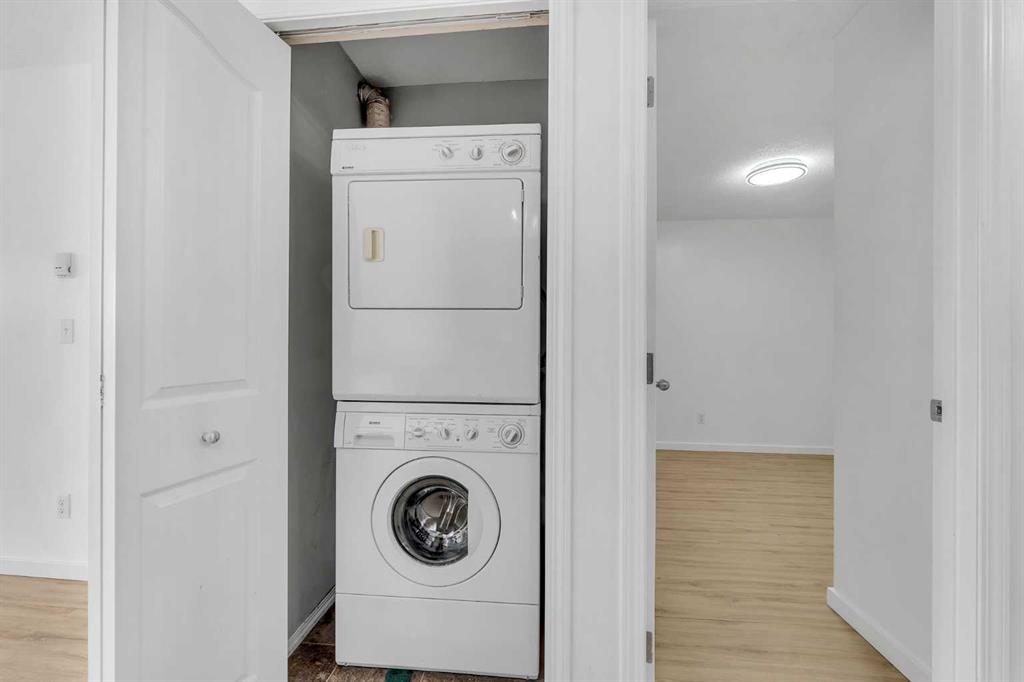 Top-Floor 2 Bed, 1 Bath Apartment with Stunning Mountain Views in Taradale, NE Calgary Welcome to this beautifully maintained top-floor 2-bedroom, 1-bathroom apartment, offering exceptional comfort, style, and convenience in the heart of the mature and family-friendly community of Taradale. This freshly painted home features vinyl plank flooring throughout, providing a clean, modern, and seamless feel from room to room. The bright and airy open-concept layout is enhanced by large west-facing windows, allowing for abundant natural light and showcasing breathtaking mountain views. The well-appointed kitchen includes sleek granite countertops, ample cabinetry for all your storage needs, and an efficient layout ideal for cooking and entertaining. The primary bedroom is generously sized and features a large closet along with a west-facing window that captures evening sunlight. A second bedroom offers flexibility for guests, a home office, or family living. The unit also includes a full 4- piece bathroom and a stacked in-suite laundry set strategically tucked away for added convenience. Step outside onto the spacious balcony, perfect for barbecues, relaxing, or hosting gatherings while enjoying beautiful sunset and mountain views. A dedicated parking stall is included for your comfort and peace of mind. Located within walking distance to schools, parks, and local plazas, this home is ideally situated close to major highways, just 15 minutes to the Calgary International Airport and 20 minutes to downtown Calgary. Whether you’re a first-time buyer, downsizing, or investing, this property offers incredible value in a sought-after location. Don’t miss your opportunity to own this amazing top-floor unit—book your showing today!