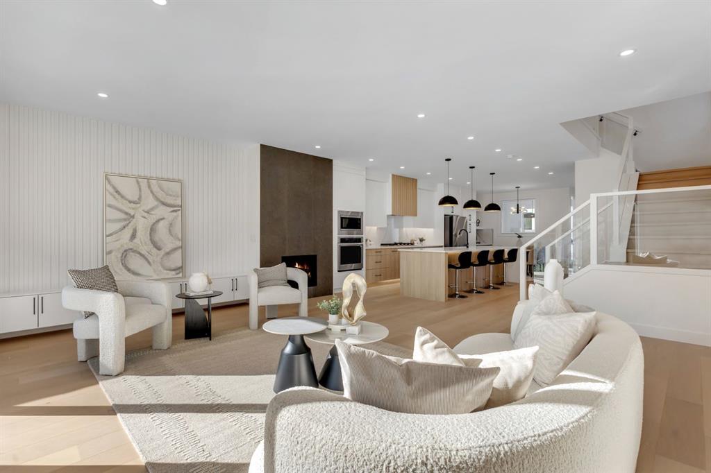 Step inside this brand-new semi-detached home in HIGHLAND PARK and you’ll immediately notice the thoughtful design that blends everyday function with modern luxury. With 4 beds, 3.5 baths, and a rare ATTACHED GARAGE, this home offers more than just a place to live—it’s a lifestyle upgrade in one of Calgary’s most central communities. The entryway opens into a bright main floor filled with natural light from oversized windows. A private main floor office just inside is the perfect spot for productivity – with a peek-through window into the main floor and extra large window for tons of natural light. The powder room is tucked away nicely near the office for clients or guests, with designer lighting and quartz countertop. Anchored by a large island with seating, the kitchen will definitely impress! It offers an abundance of storage and workspace, with quartz countertops, a gas cooktop, built-in oven, and high-end stainless appliances, it’s built for both serious cooking and casual entertaining. The open layout connects seamlessly to the dining and living room area, making it easy to host friends for dinner or enjoy family meals without missing a beat. Transom windows overlook this open area for more natural light, and a sleek gas fireplace with full height custom grey tile surround guides your eye to the built-in media centre with wood slat feature wall. Upstairs you’ll find the primary retreat is a private escape, featuring a large walk-in closet and a spa-inspired ensuite with a deep soaker tub, double vanity, and tiled shower with STEAM SHOWER rough-in. Two additional bedrooms, each with their own WALK-IN CLOSETS, share a stylish 4-piece bathroom. An upstairs laundry room adds to the everyday functionality. The fully developed basement is all about versatility. There’s a spacious rec room complete with a WET BAR, R/I for a projector – ideal for movie nights, game day, or hosting guests. A fourth bedroom & full bathroom create a comfortable space for overnight visitors, older kids, or extended family. And thanks to the ATTACHED GARAGE, you’ll enjoy direct access into the basement, keeping you sheltered from the elements year-round with built-in cubbies & hooks for organization & convenience. Outside, a private SOUTH backyard with a deck & BBQ gas line extends your living space into the outdoors. Located in Highland Park, this home combines quiet residential living with incredible convenience. Confederation Park and its extensive pathways are nearby, offering the perfect setting for walks, runs, and family time. Local schools, playgrounds, and community amenities are within easy reach, and the central location makes commuting downtown or to the airport a breeze. Shopping, dining, and everyday essentials are minutes away along Centre Street and 16th Avenue. With its thoughtful floor plan, luxury finishes, and the rare advantage of an ATTACHED UNDERGROUND GARAGE, this property is a standout opportunity to move into a brand-new home that’s ready to welcome you today!