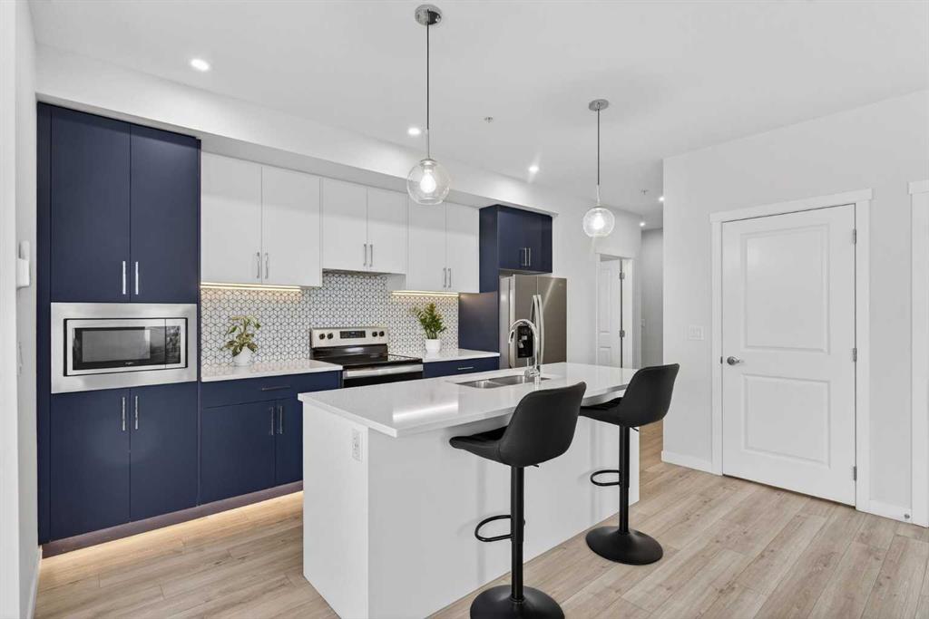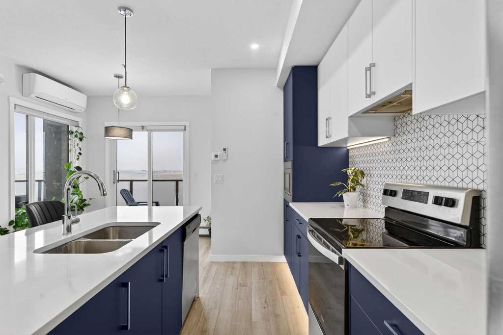 Welcome to this stunning CORNER UNIT in desirable SAGE HILL NW CALGARY, delivering premium lifestyle value and unbeatable convenience. This bright and modern home features an OVERSIZED L-SHAPED BALCONY with UNOBSTRUCTED VIEWS, perfect for relaxing or entertaining. Inside, you’ll find 2 BEDROOMS and 2 FULL BATHROOMS complemented by an OPEN CONCEPT LAYOUT and EXTRA WINDOWS that flood the space with natural light all day long. The upgraded kitchen is a standout, showcasing STAINLESS STEEL APPLIANCES, KITCHEN CABINETS TO THE CEILING, and QUARTZ COUNTERTOPS THROUGHOUT for a clean, high-end finish. Enjoy the spacious feel of 9 FT CEILING HEIGHT that enhances the modern design. Parking and storage are a rare bonus with 2 TITLED PARKINGS — 1 HEATED UNDERGROUND stall and 1 OUTSIDE STALL — plus a TITLED HEATED UNDERGROUND STORAGE unit for maximum functionality. Location is a major differentiator: just a 1 MIN WALK TO ESSENTIAL AMENITIES including CO-OP GROCERY STORE, SHOPPERS DRUG MART, CANADA POST, TIM HORTONS, ANYTIME FITNESS, CHILDCARE, GOLF SWEET INDOOR GOLF, and numerous restaurants. You’ll also appreciate EASY ACCESS TO STONEY TRAIL, only 20 MINUTES TO DOWNTOWN CALGARY, and an abundance of WALKING PATHS AND SCENIC TRAILS nearby. This is turnkey condo living with scale, upgrades, and location advantages that are hard to replicate. BOOK YOUR SHOWING TODAY — opportunities like this don’t sit.