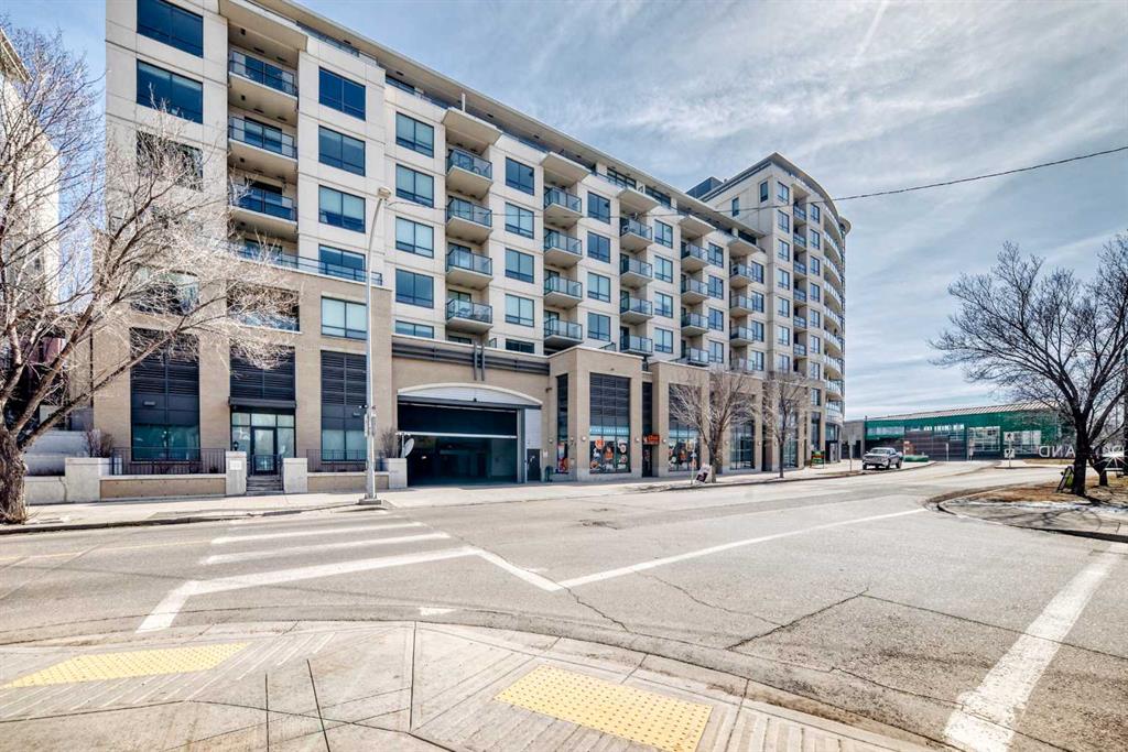 Super bright 2 bedroom condo overlooking the courtyard and community garden plots. East facing so great morning sun on the balcony. There is only one common wall allowing for lots of windows throughout. Shows like new with stainless steel appliances that includes a gas stove top. Quartz counter tops with loads of cabinets. Primary bedroom shares an ensuite , in-suite laundry. Good size second bedroom. A well managed building with amenities that include a gym, work room to service bikes, a wash bay for dogs, theater room, community gardens for the green thumb. Courtyard with a BBQ for entertaining. There is secure titled parking plus a storage locker and bike locker. All within a 5 min walk to the Bridgeland LRT.