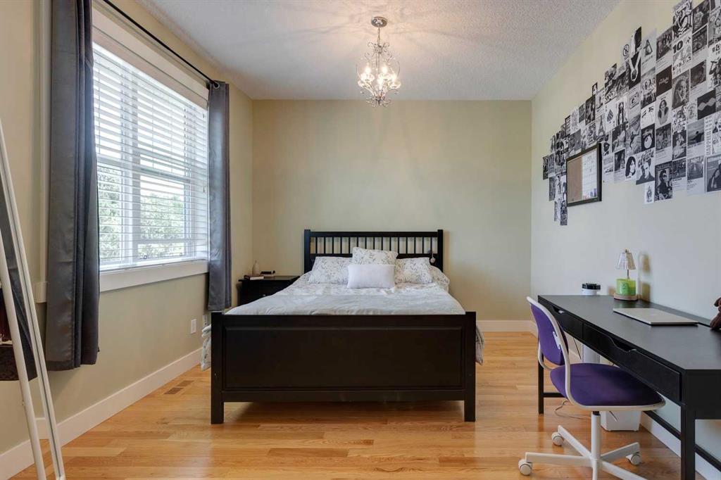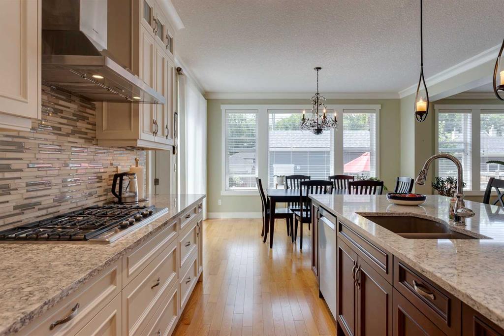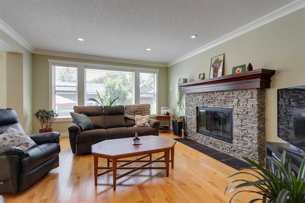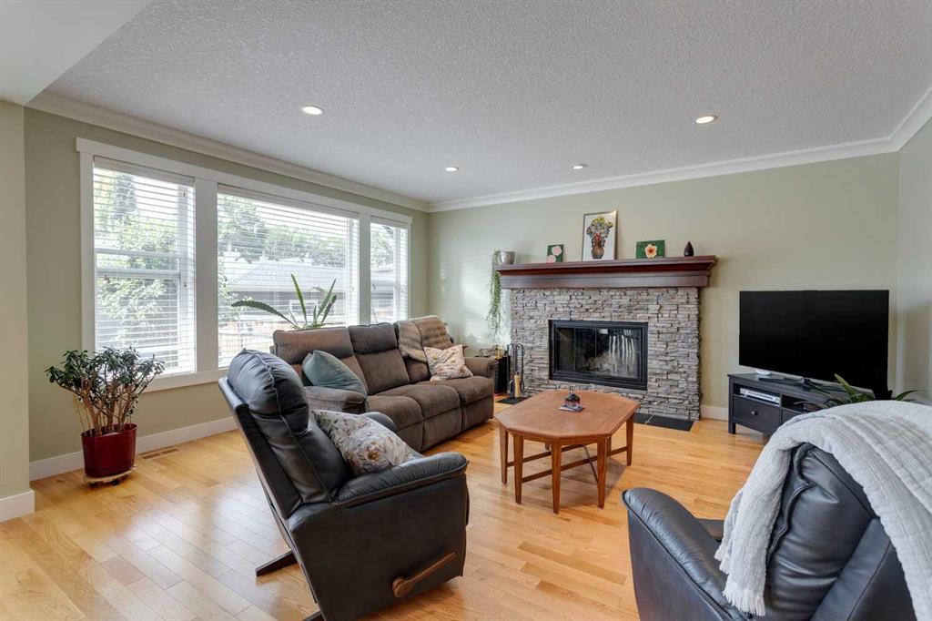 Inside, the home boasts 5 spacious bedrooms and 4.5 bathrooms, thoughtfully designed for today’s lifestyle. The open-concept main floor features rich hardwood, custom millwork, and a bright living room centered around a cozy wood-burning fireplace. The chef’s kitchen is a showstopper with quartz countertops, high-end stainless appliances, a gas cooktop, wall oven, oversized fridge with water/ice, and an impressive 9’x10’ pantry with a second fridge and sink. The main-floor room with private ensuite provides outstanding flexibility as a bedroom, home office, guest suite, or nanny quarters.