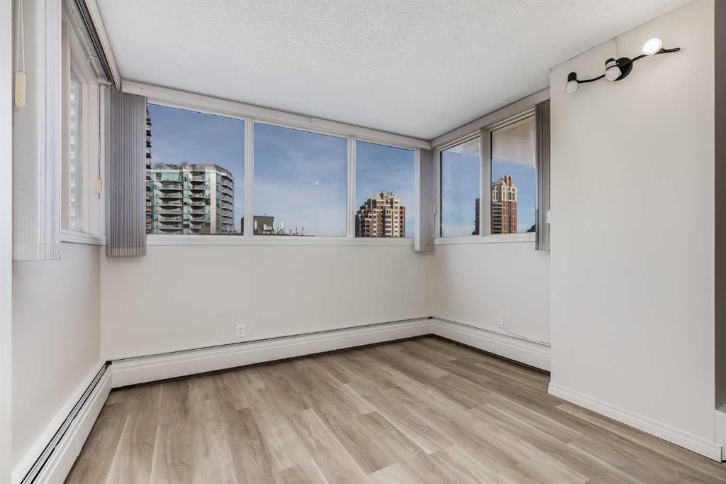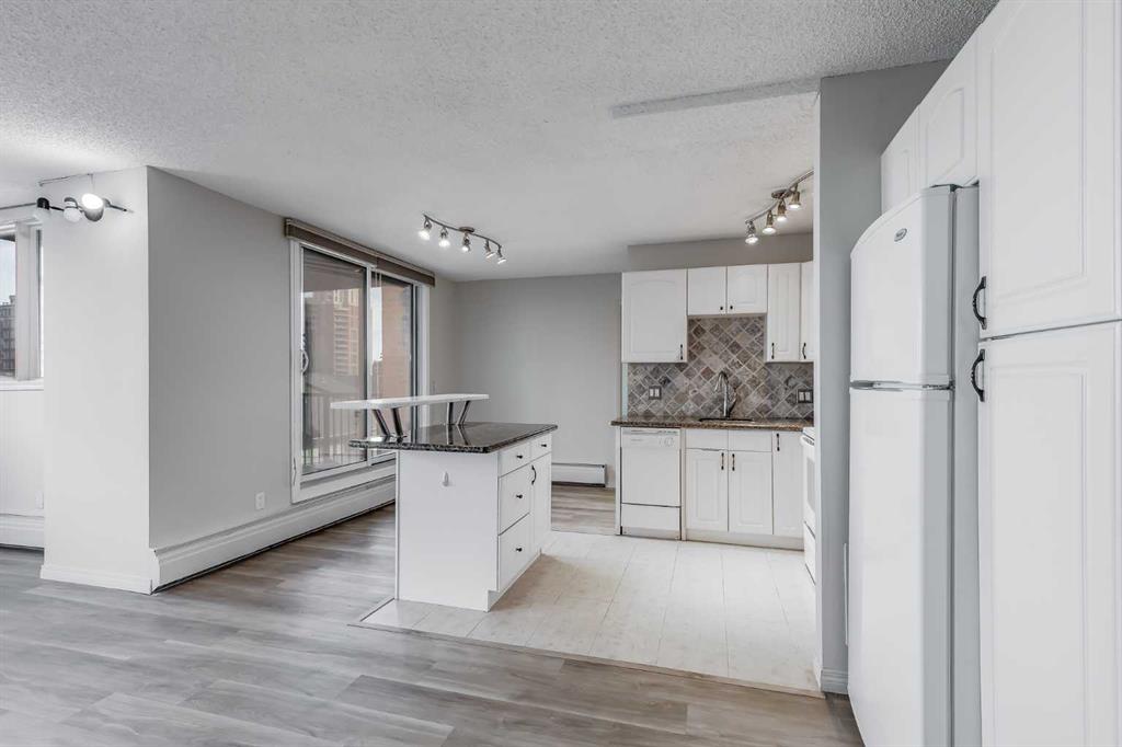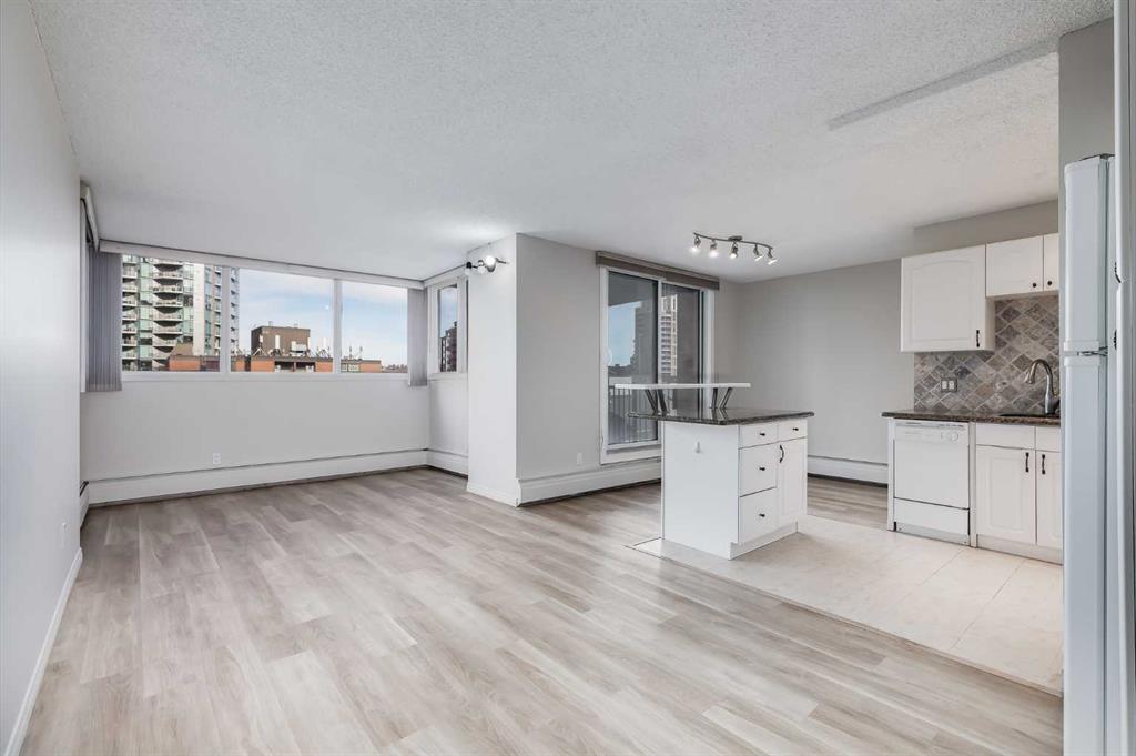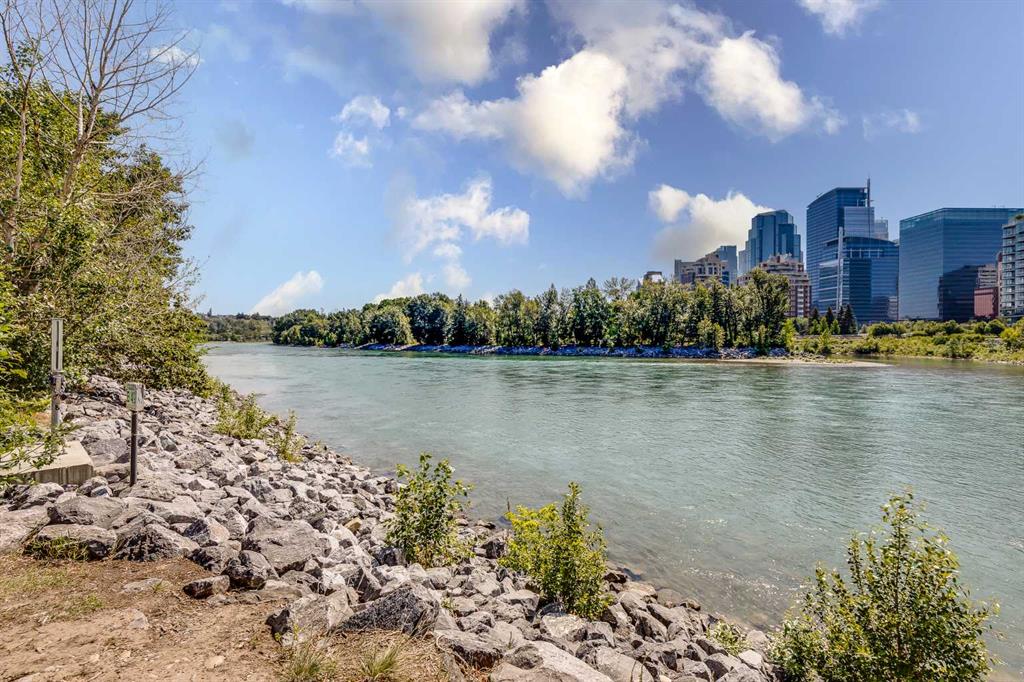 Welcome to elevated living in the heart of Eau Claire. This bright and beautifully maintained CORNER UNIT offers exceptional space, functionality, and modern comfort in one of Calgary’s most desirable downtown communities. Featuring 2 bedrooms and 1 bathroom, this thoughtfully designed home showcases an open-concept layout filled with natural light thanks to its corner positioning and expansive windows. Recent updates include vinyl flooring, fresh paint throughout, and a brand-new dishwasher and mounted microwave, creating a fresh, move-in-ready feel. The modern kitchen is both stylish and practical, complete with granite countertops, an eat-up bar, and ample cabinetry – perfect for everyday living or entertaining. A true standout feature is the oversized walk-in pantry, offering storage space rarely found even in most detached homes. Enjoy the convenience of in-suite laundry and the comfort of heated underground parking, ideally located close to the parkade entrance and elevator for effortless daily access. Even better, all utilities are included in the condo fee, allowing for simplified monthly budgeting and exceptional overall value. Prince’s Crossing is a well-managed concrete high-rise offering an impressive range of amenities, including a fully equipped fitness centre complete with steam room, lockers, showers, concierge service, 24-hour security, daycare located within the building, and an on-site convenience store . Located just steps from the Bow River pathways, parks, restaurants, and everything downtown Calgary has to offer, this home offers the perfect blend of urban vibrancy and natural beauty. Spacious, updated, and exceptionally well located – this one truly checks all the boxes. Book your private showing today.
