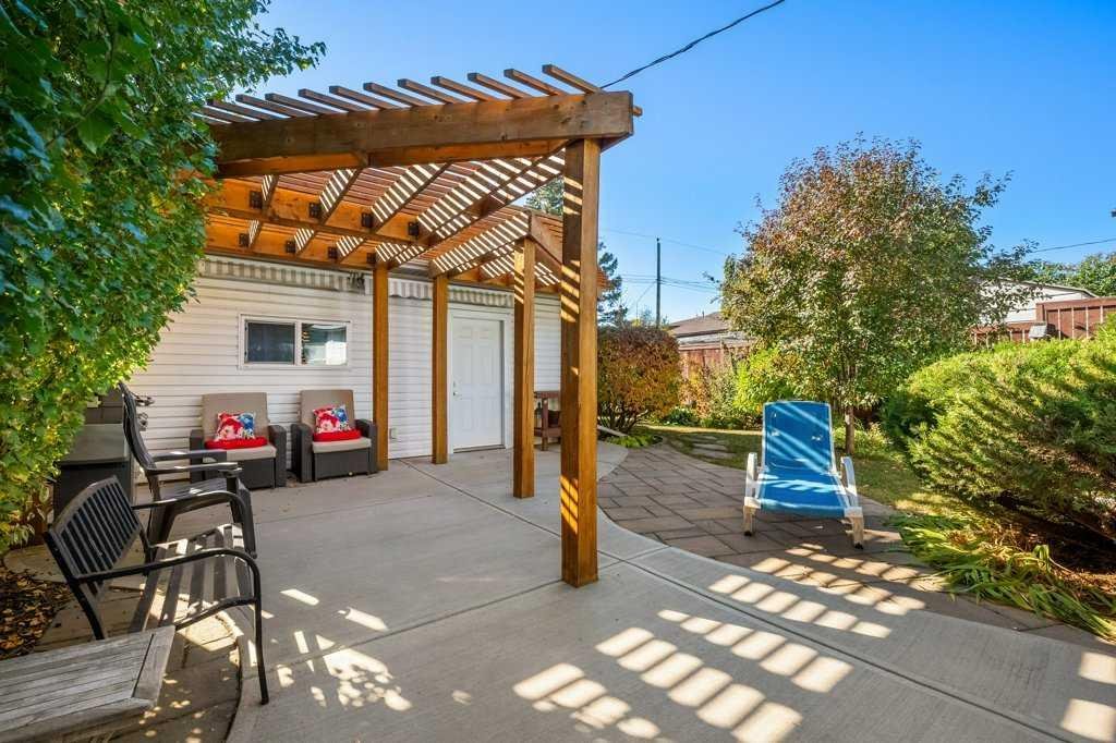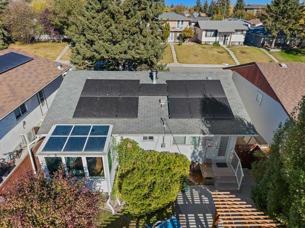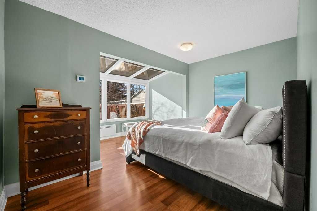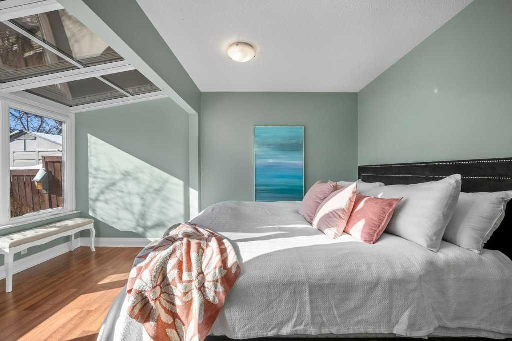 Open House Sunday is Canceled. Welcome to this gem of a home. Located on a friendly and quiet street, this house is perfect for a couple or young family. The main floor features an open plan kitchen, dining area, and living room. The kitchen has been updated with full height white cabinetry and granite countertops and overlooks the lovely back yard. The main floor also features two large bedrooms, either of which can be your primary bedroom, and a third bedroom/den. The rear large bedroom has been extended with a sunroom which connects you to the outdoors no matter what the weather. The main bath has been updated with a soaker tub/shower, additional storage, and a granite topped vanity. The fully developed basement features a huge rec room, fourth bedroom, and updated 3-piece bathroom. There is also a generous utility/laundry room which provides extra storage. Both the front and back yards have been professionally landscaped and beautifully maintained. The back yard features a patio area with pergola, mature trees and shrubs, and a grassy area for pets and kids. There is also a newer double detached garage and solar panels on the south facing roof of the house. This house is move-in ready and will make a wonderful new home.