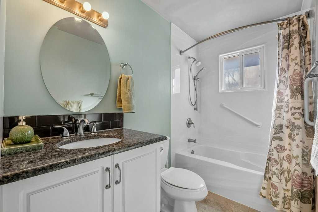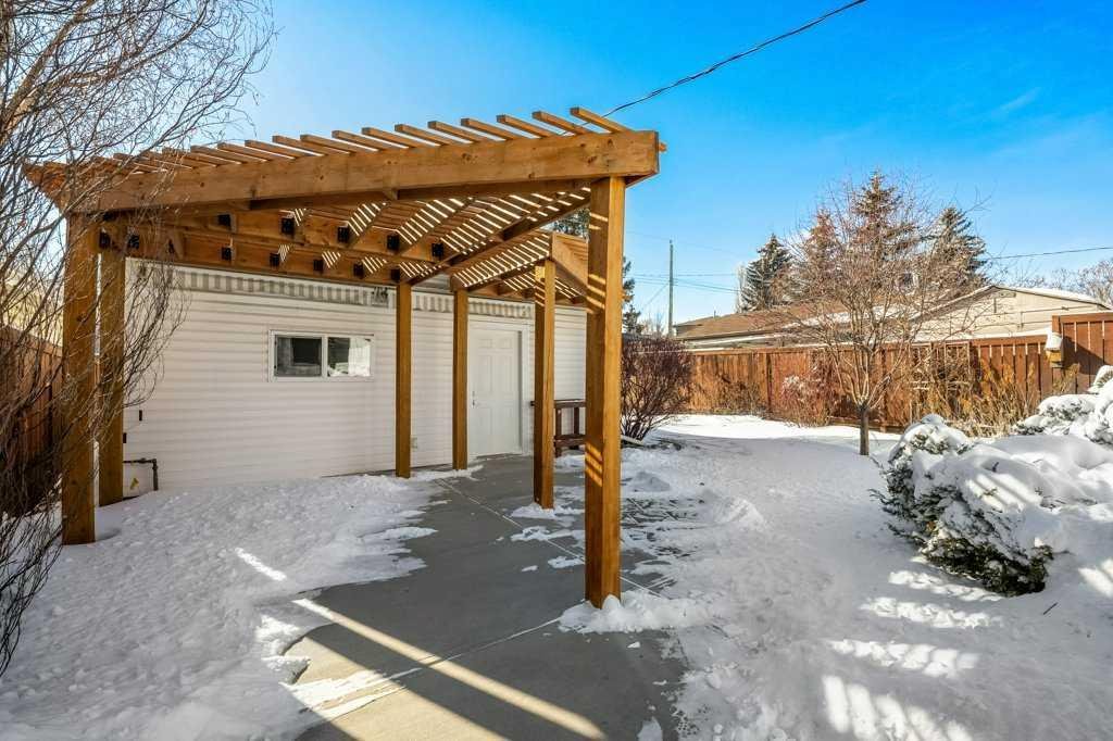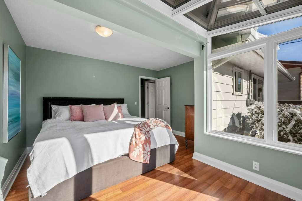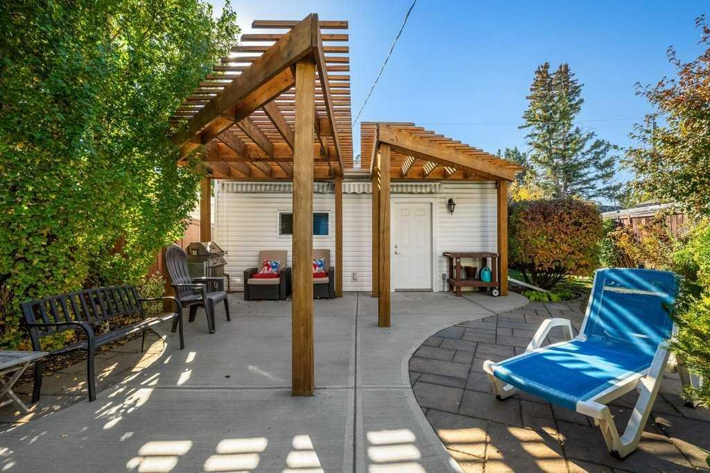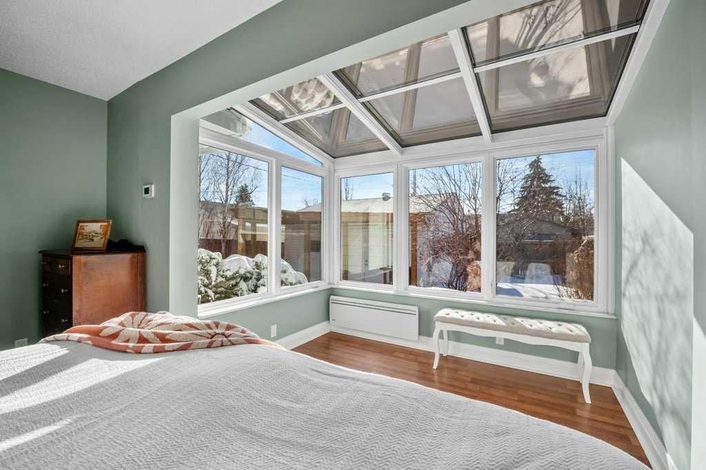 Open House Sunday is Canceled. Welcome to this gem of a home. Located on a friendly and quiet street, this house is perfect for a couple or young family. The main floor features an open plan kitchen, dining area, and living room. The kitchen has been updated with full height white cabinetry and granite countertops and overlooks the lovely back yard. The main floor also features two large bedrooms, either of which can be your primary bedroom, and a third bedroom/den. The rear large bedroom has been extended with a sunroom which connects you to the outdoors no matter what the weather. The main bath has been updated with a soaker tub/shower, additional storage, and a granite topped vanity. The fully developed basement features a huge rec room, fourth bedroom, and updated 3-piece bathroom. There is also a generous utility/laundry room which provides extra storage. Both the front and back yards have been professionally landscaped and beautifully maintained. The back yard features a patio area with pergola, mature trees and shrubs, and a grassy area for pets and kids. There is also a newer double detached garage and solar panels on the south facing roof of the house. This house is move-in ready and will make a wonderful new home.