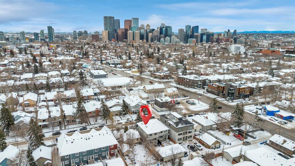 OPEN HOUSE SAT FEB 21 from 12:00pm-2:00pm and SUN FEB 22 from 2:00-4:00pm – This exceptional inner-city infill stands apart for its quality, craftsmanship, and thoughtful design. Located in the sought-after community of Renfrew, this stunning two-storey home offers unbeatable access to schools, recreation facilities, scenic pathways, public transit, and is just minutes from downtown, WALKABLE even! Every detail has been carefully curated, from the designer lighting and custom tile work to a tailored built in with mirror, a timeless neutral palette, and a main floor office. Oversized windows and 9’ ceilings on all three levels flood the home with natural light, enhancing the open, modern layout that balances style with everyday functionality. The chef-inspired kitchen is a true showpiece, featuring a premium Jenn-Air stainless steel appliance package, custom cabinetry, built-in wine cooler, and an impressive 13-foot quartz island with seating for four—perfect for entertaining. The space flows seamlessly into the dining area and inviting living room, anchored by a striking tiled gas fireplace for chilly winter nights. Central air also included for the future warm days of Calgary! Upstairs, the primary retreat is nothing short of spectacular, showcasing a spa-like ensuite designed for relaxation with a soaker tub, dual sinks and walk in shower, a walk-in closet, and Two additional great sized bedrooms, a spacious 4 pc bathroom, and convenient upper-level laundry complete this level. The fully developed basement offers an ideal home theatre space with a refreshment station—perfect for movie nights or entertaining guests. Outside, enjoy a low-maintenance, landscaped and fenced backyard with a private ground-level patio, green space, and a double detached garage already wired for EV charger. Quick possession is available if you want to spend the holidays here! A refined inner-city lifestyle awaits in this meticulously crafted Renfrew home.