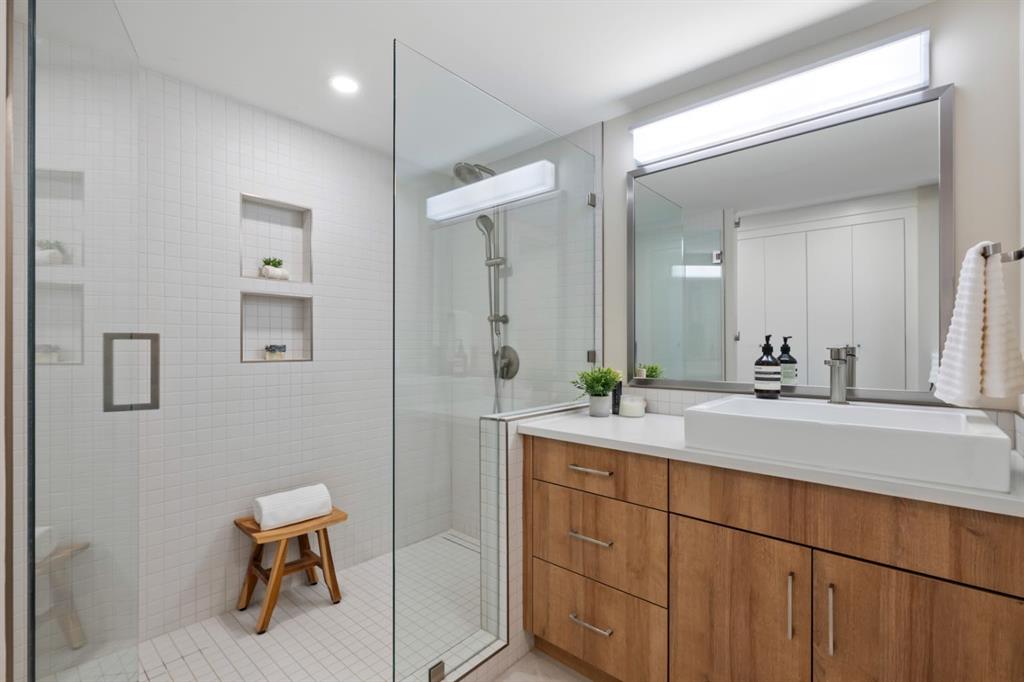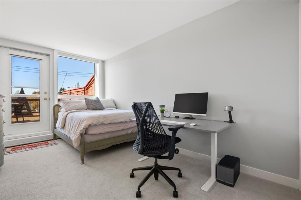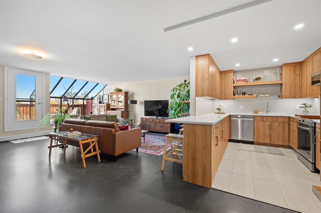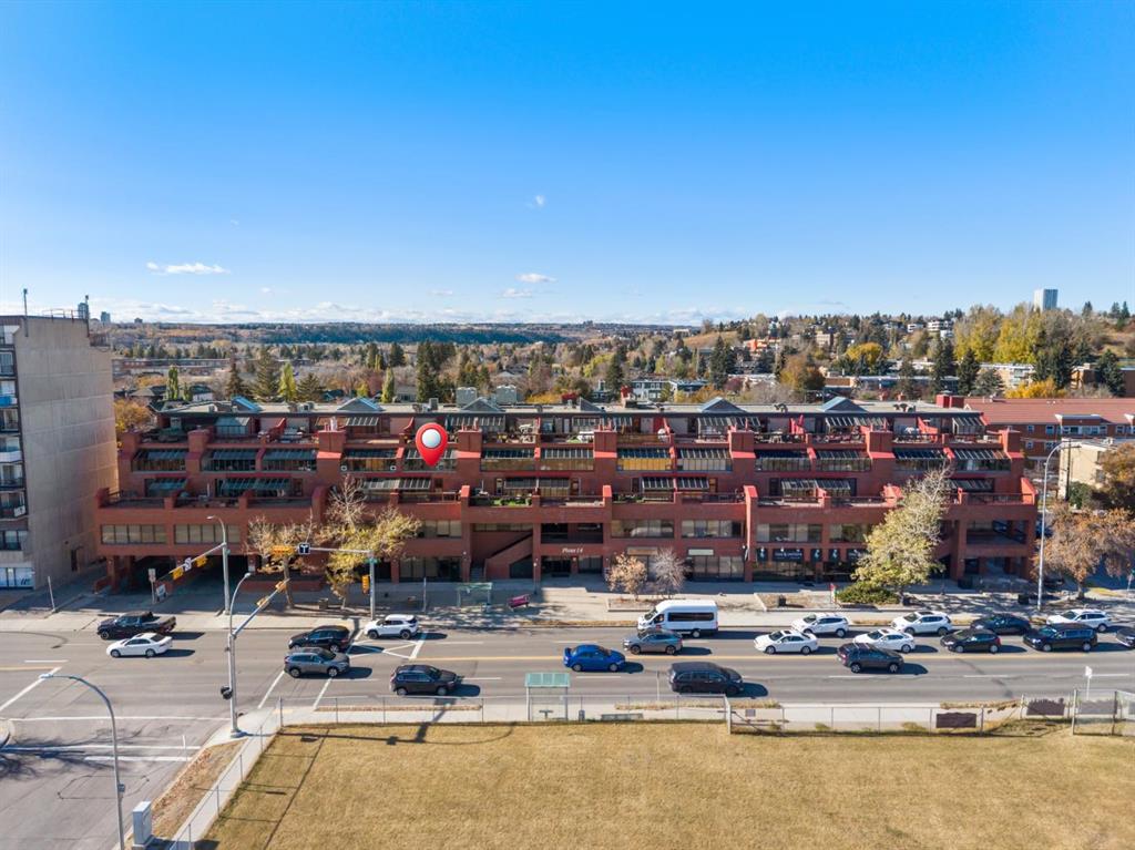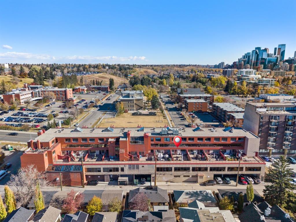 Welcome to Plaza 14 — an architecturally significant boutique residence with each unit accessed from a bright, promenade-style hallway that sets the tone for refined urban living. This well-managed complex is over 70% owner-occupied, offering a strong sense of community and pride of ownership throughout. This suite greets you with a spacious, skylit foyer that makes an immediate impression, offering exceptional storage and a seamless flow into the heart of the home. A striking staircase with beautiful custom storage design beneath leading to the main living area, creating a true sense of arrival. Flooded with natural light, the thoughtfully designed layout features generously sized rooms all on one level. The east end of the suite showcases a beautifully updated kitchen, living, and dining area — complete with a cozy wood-burning fireplace, a private balcony, and sweeping views of the city skyline. Centrally positioned between the east and west wings of the home, you’ll find the stylishly renovated main bathroom and laundry area, offering convenience and thoughtful separation between living and sleeping spaces. At the opposite end, two expansive bedrooms (both with new double pane windows) and a second modern ensuite bathroom. You’ll also find an impressive 600 sq. ft. west-facing private patio — the perfect retreat for relaxing or entertaining. Every detail has been carefully considered, with recent renovations including updated bathrooms, kitchen, laundry room, flooring and appliances. This one-of-a-kind residence combines architectural character with contemporary style in one of Calgary’s most desirable communities. Just steps from the vibrant shops, cafés, and amenities of Hillhurst and Kensington, you’ll experience the very best of urban living right at your doorstep.