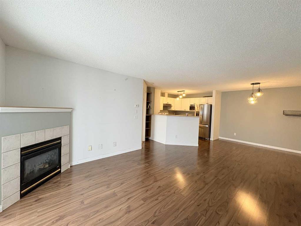 This unit is located on the top floor of the 4000 units complex, It’s balcony is situated to perfectly view the water bodies overseeing the Stoney Trail. Despite its proximity, traffic noise is minimal. From the elevators, It’s a straight and short path to the unit for convenience. The unit is spaciously laid out with privacy between the two bedrooms. There are a total of two bathrooms with one of them located inside the primary bedroom. The living room is brightly lit and give a great view of the balcony, the kitchen makes effective use of its space and has been neatly kept, perfect for a few roommates of a small family starting out.