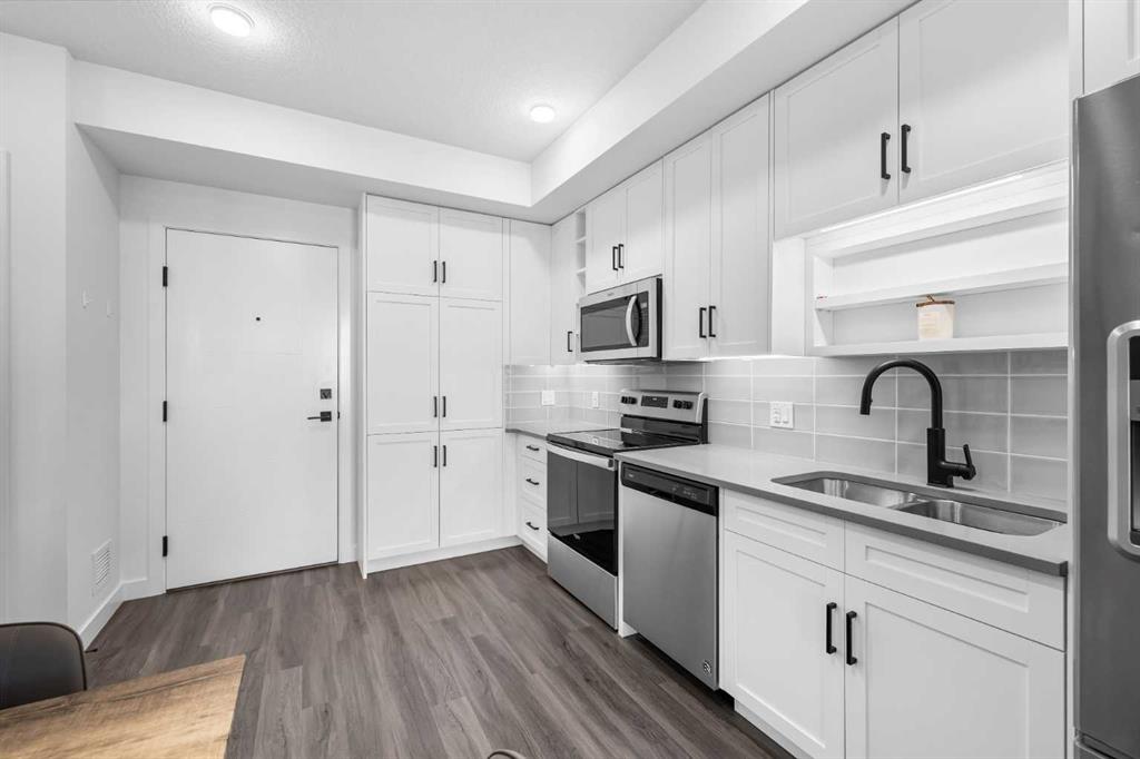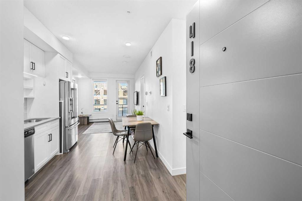 Welcome to this stylish 1-bedroom condo located in the vibrant and highly desirable University District, offering modern living in one of the city’s most dynamic and walkable communities. Situated in the sought-after August building, this home combines contemporary design, thoughtful functionality, and exceptional location. The open-concept layout is highlighted by modern finishes and clean architectural lines, creating a bright and inviting living space. The well-appointed kitchen features sleek cabinetry, quality appliances, and ample counter space, flowing seamlessly into the living and dining areas—perfect for both everyday living and entertaining. Large windows bring in abundant natural light and lead out to the oversized deck, an ideal spot to relax, host guests, or enjoy outdoor living in an urban setting. The spacious bedroom offers a comfortable retreat with a generous walk in closet, while the stylish bathroom complements the home’s modern aesthetic. Added conveniences include in-suite laundry and in-suite storage, providing practicality without compromising design. This unit also comes with a titled underground parking stall, secured underground storage locker, and the peace of mind that comes with a well-maintained, secure building. The August building is known for its contemporary style and prime location within University District. Enjoy unparalleled access to restaurants, cafés, grocery stores, HOT YOGA (my first choice!), fitness studios, parks, and transit, all just steps from your door, along with proximity to the University of Calgary, Foothills Medical Centre, and Alberta Children’s Hospital. The Bow River pathway system is a short walk from the University District. And whether you’re a professional, student, or investor, this beautifully designed condo offers a low-maintenance lifestyle in one of the city’s most exciting communities.