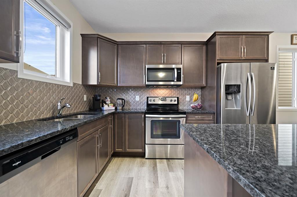 Located in desirable South Winding, this 2018-built 2-storey home offers 2,419 sq. ft. of living space, a double attached garage, a brand-new air conditioner, and a fully fenced lot – a perfect blend of modern comfort and everyday convenience. The main floor features 9-foot ceilings, enhancing the sense of space throughout the open-concept layout. Natural light highlights the LVP flooring, while the kitchen offers quartz countertops, stainless steel appliances, ample cabinets, and a large pantry making it a perfect setup for cooking and gathering. The dining area transitions smoothly into the living room, highlighted by a corner gas fireplace and classic mantle. Just beyond the kitchen, a brand-new composite deck invites you to extend your living outdoors. A convenient half bathroom finishes off this well-planned main level. On the upper level, you’ll find three well-sized bedrooms, each offering comfort and versatility, while the bonus room provides flexibility and opportunities for entertainment, creativity, or a quiet workspace. The primary bedroom offers a serene escape, complemented by a 4-piece ensuite with a deep soaker tub, separate shower, and a walk-in closet that keeps everything in order. Also on this level one will find a shared full bathroom and a separate laundry room to ensure the upper floor remains both practical and well-organized. Venture downstairs to a fully unfinished lower level with rough-in plumbing, offering a blank canvas ready for your vision – be it a home gym, theatre room, or added living space. Located just minutes from local shops, schools, and parks, this home blends everyday convenience with a sense of comfort. And for those who prefer a quieter commute, nearby back roads offer a smooth way to bypass the city’s busy traffic. Thoughtfully designed. Effortlessly livable. Perfectly positioned for what comes next.