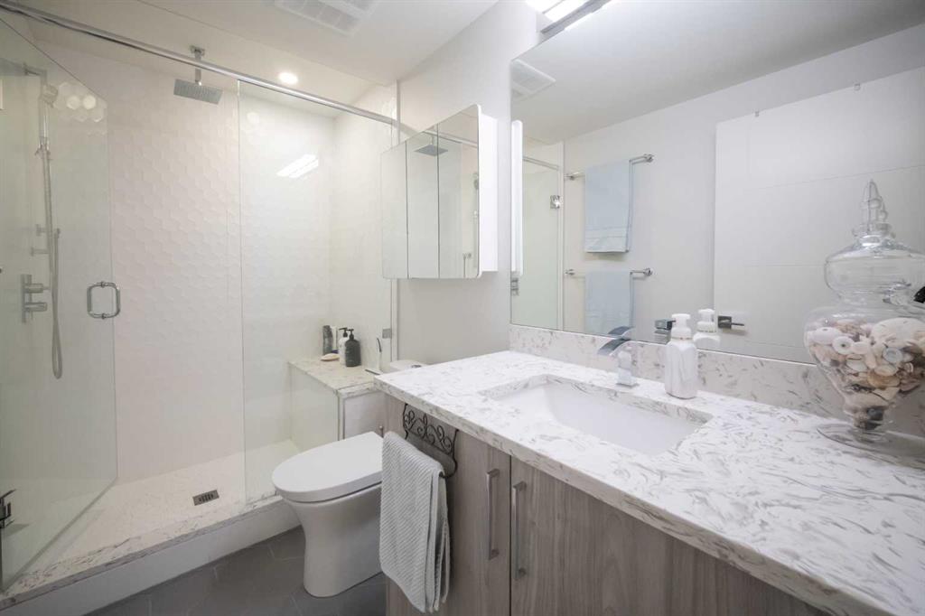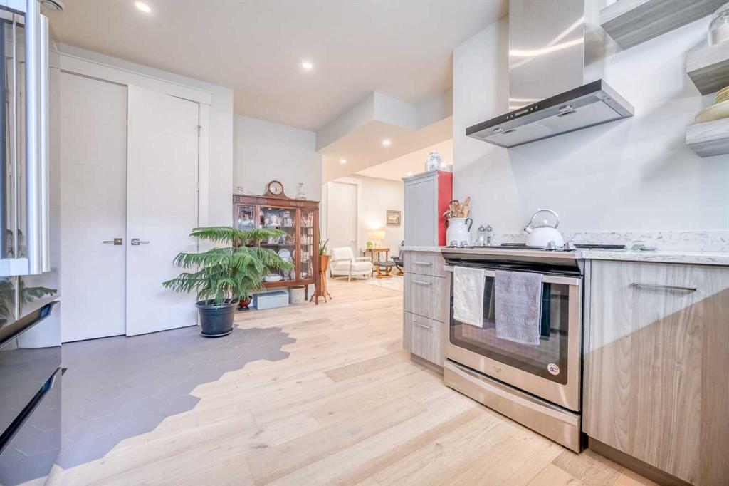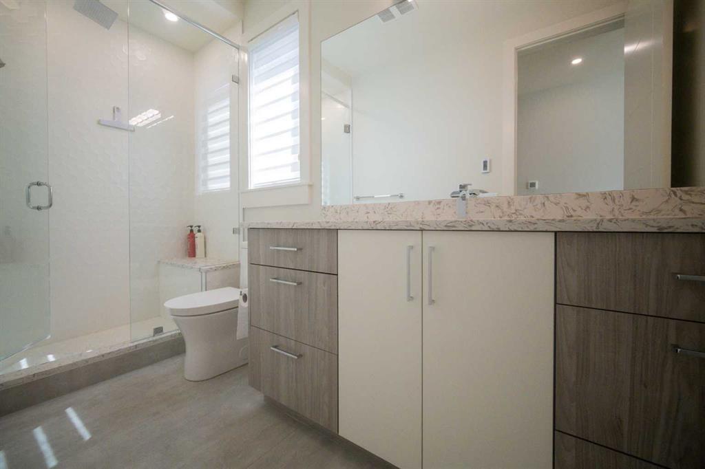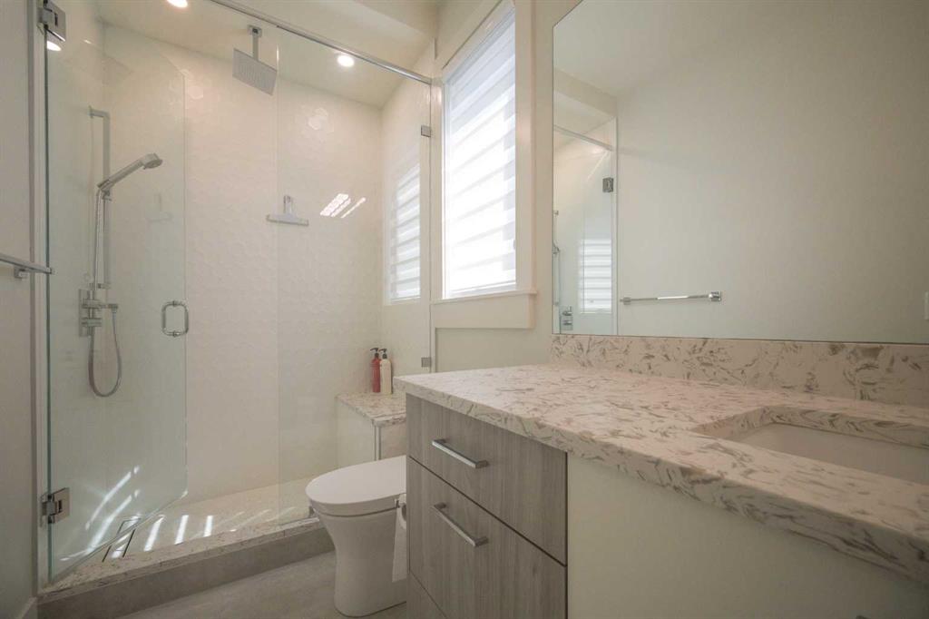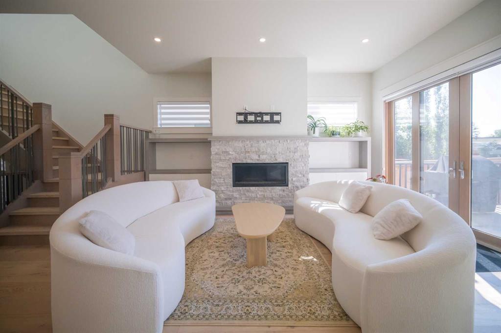 Welcome to this exquisite residence in the highly desirable inner-city community of Winston Heights. Situated on a generous 36.5′ x 152′ lot, this upscale executive home showcases exceptional craftsmanship and a thoughtfully designed floor plan that spans over 4,300 square feet of luxurious living space, enhanced by soaring 10-foot ceilings. From the moment you enter, you are welcomed by elegant white oak plank hardwood flooring that flows seamlessly throughout the entire home, including the staircase. The stylish chef’s kitchen is a true centerpiece, featuring a large central island, contemporary cabinetry, and High end JennAir stainless-steel appliances. A bright dining nook, framed by two large windows and a chic chandelier, overlooks the landscaped backyard. The spacious living room boasts an elongated gas fireplace with quartz stone surround, flanked by custom built-ins, and oversized sliding patio doors leading to the sunny rear deck—perfect for both entertaining and relaxing. A well-appointed mudroom on the main floor includes a large closet and abundant shelving, offering practical storage solutions for everyday living. Upstairs, the second level features a generous primary suite complete with 9-foot ceiling, a walk-in closet and a spa-inspired 5-piece ensuite that includes double sinks, a luxurious soaker tub, and an oversized steam/rain shower with a bench and 10mm glass enclosure. Two additional bedrooms, a bonus room, a sleek 3-piece bathroom, a dedicated office, and a separate laundry room add both comfort and functionality to this level. The fully developed legal basement suite, enhanced with in-floor heating, offers even more living space and versatility. It includes a spacious entertainment area with a fully equipped kitchen, two additional bedrooms, and a beautifully designed 3-piece bathroom—ideal for extended family or rental opportunities. Step outside to the beautifully landscaped backyard—an ideal setting for gatherings with family and friends. This home is loaded with premium upgrades, including triple-pane windows, basement in-floor heating, an oversized double garage with a 9-foot high door (lift-ready), custom built-ins, solid core doors, built-in ceiling speakers, flat-painted ceilings, programmable Lutron lighting, extra-wide baseboards and trim, and so much more. This is a truly exceptional modern home in one of Calgary’s most sought-after inner-city locations. Book your private showing today!
