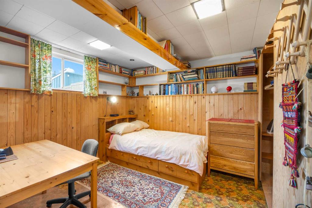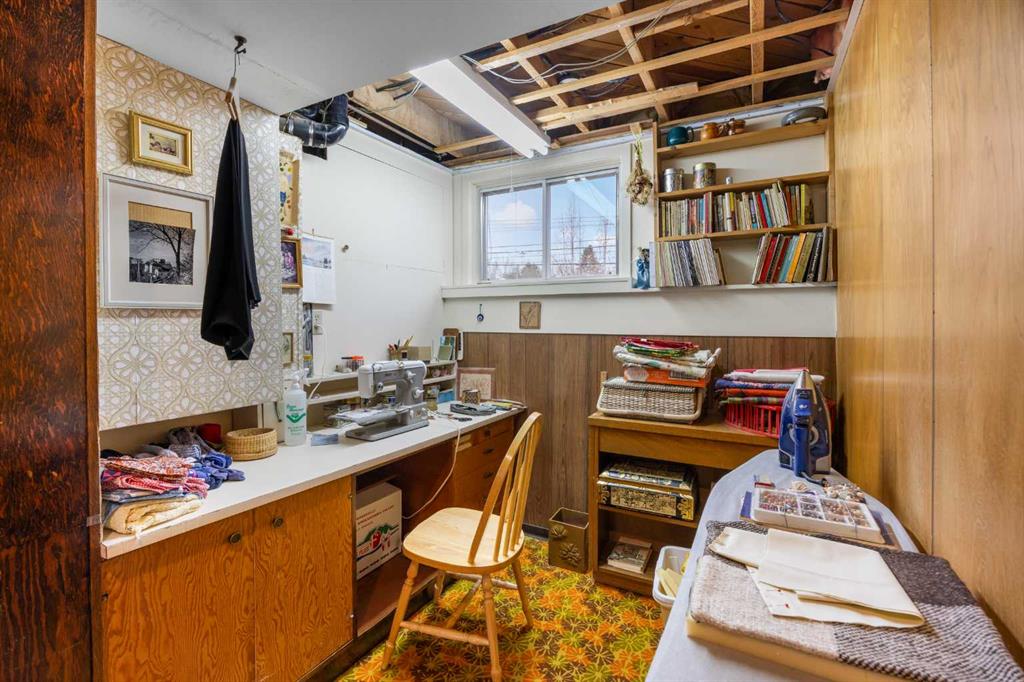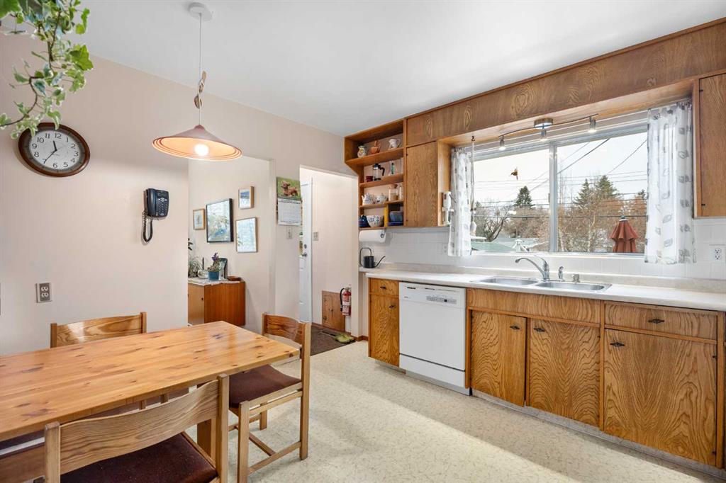 Outside is where this home truly shines. The large south-facing backyard is fully landscaped and a gardener’s delight, featuring raspberry bushes, strawberry patches, a rose garden, and a variety of other fruits, herbs, and flowering plants—all lovingly tended. A patio invites casual gatherings, and the expansive yard leads to a heated detached single garage with back-lane access, which can also be used as a workshop, making it convenient and private.