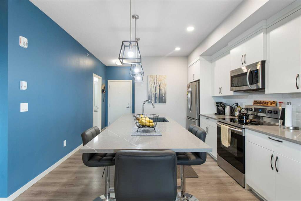 Experience the best of Seton living in this stylish 2-bedroom, 1-bathroom home designed for comfort and convenience. A contemporary open-concept layout welcomes you inside, where natural light pours through oversized windows and highlights the clean lines of plank-style flooring. The kitchen anchors the space with quartz counters, an oversized island that doubles as a gathering hub, stainless steel appliances, full-height cabinetry and a timeless subway-tile backsplash. Soft-close drawers, abundant storage and a deep under-mount sink ensure both elegance and everyday function. The living and dining areas connect seamlessly to a private balcony with gas line, an ideal extension for morning coffee, fresh air breaks or evening barbecues. Two well-sized bedrooms offer versatility, whether as restful retreats, a home office or guest accommodation. The bathroom is thoughtfully finished with modern fixtures, quartz vanity and a subway-tile tub surround that blends durability with spa-like style. In-suite laundry with a full stacking washer and dryer adds practical ease, while a titled underground parking stall and storage locker provide security and seasonal space. Residents benefit from energy-conscious design features such as low-emissivity windows and LED lighting, paired with controlled-access entry and professionally maintained common areas. A/C is roughed-in, giving you the ability to add cooling comfort in the future. Location is a highlight with Seton Market’s shops and dining options within walking distance, the South Health Campus close at hand and the world-class Brookfield YMCA nearby offering fitness, swimming and community programs. Outdoor enthusiasts can enjoy pathways, parks and green spaces woven throughout the community, while quick access to transit routes streamlines commutes to downtown and beyond. This home combines urban convenience with modern finishes, offering a balanced lifestyle in one of Calgary’s most dynamic neighbourhoods.