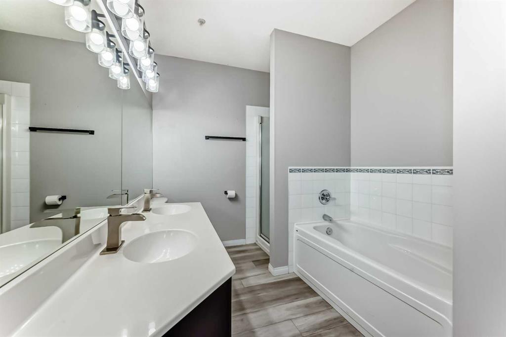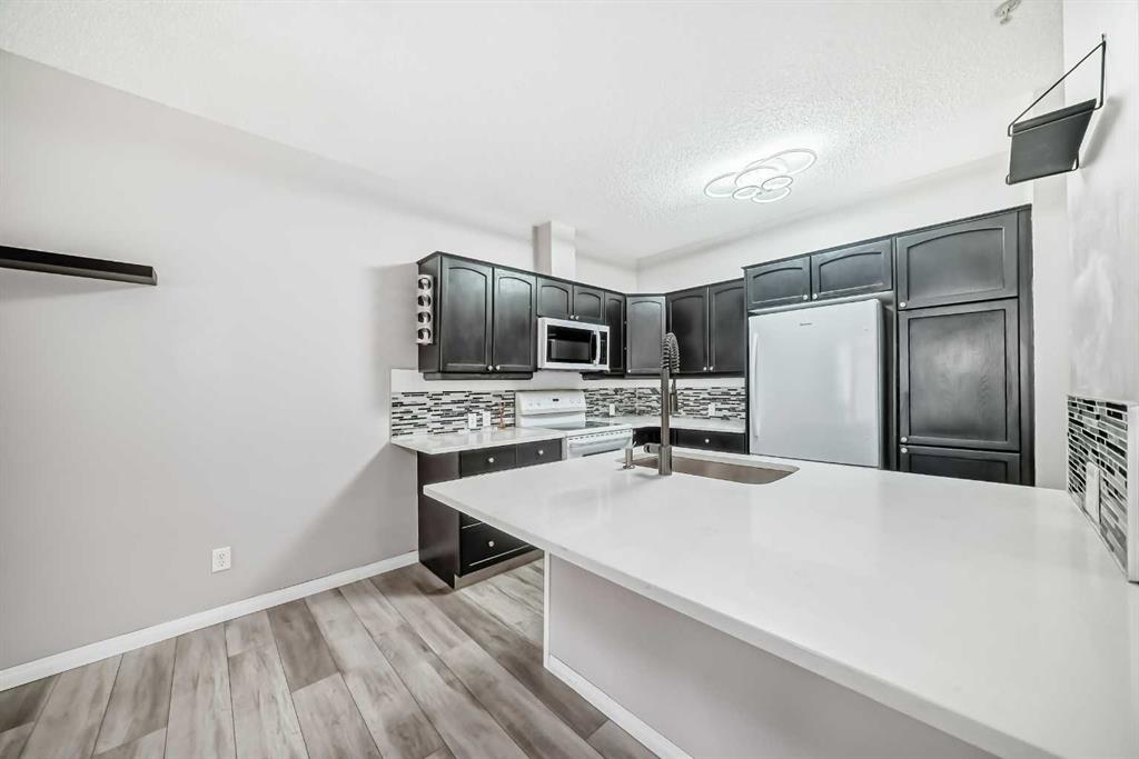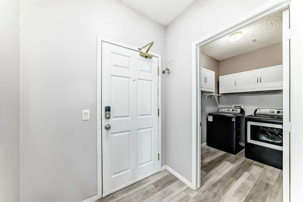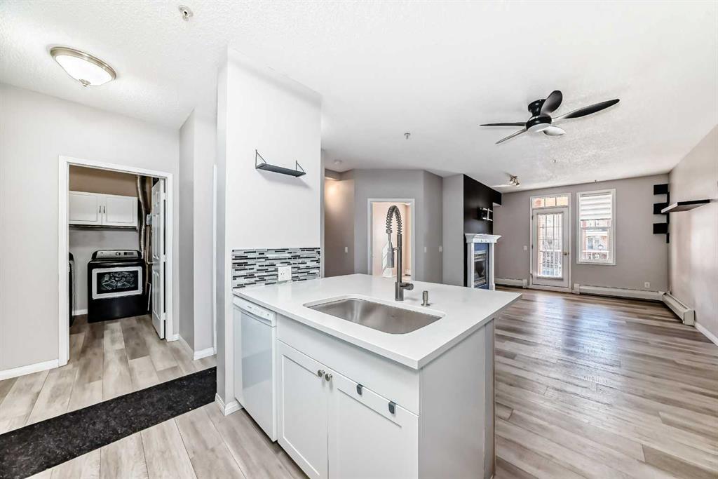 Incredible location and exceptional value in this spacious 2-bedroom, 2-bathroom condo! Unit features a generous foyer with a laundry room and extra storage to the left. To the right, you’ll find an open concept to the bright and inviting living room, dining area, and kitchen. The condo showcases tasteful renovations throughout, including a newer kitchen with a large central island and eating bar. Kitchen features dark cabinetry, white appliances, quartz countertops, and a large working island with an eating bar. The kitchen opens to the cozy living room, complete with a fireplace and newer vinyl plank flooring that extends through the living room, dining room , kitchen and laundry room.. Additional highlights include a double closet for coats and storage, a spacious master bedroom with a walk-in closet, and a luxurious 5-piece ensuite featuring a standalone tub and separate shower. A second bedroom offers plenty of closet space, and a well-appointed 3-piece bathroom completes the unit. This well-maintained complex offers a wide range of amenities, including guest suites, a party room, gym, pool table, library, workshop (located on the parkade level), indoor visitor parking, a car wash, and additional storage conveniently located nearby. Ideally situated close to all the amenities of Midnapore and 162nd Avenue, including the C-Train, shopping, restaurants, and a movie theatre. This is truly a place you’ll be proud to call home.