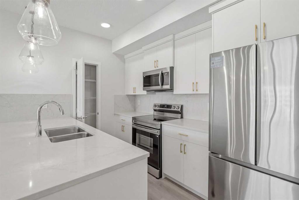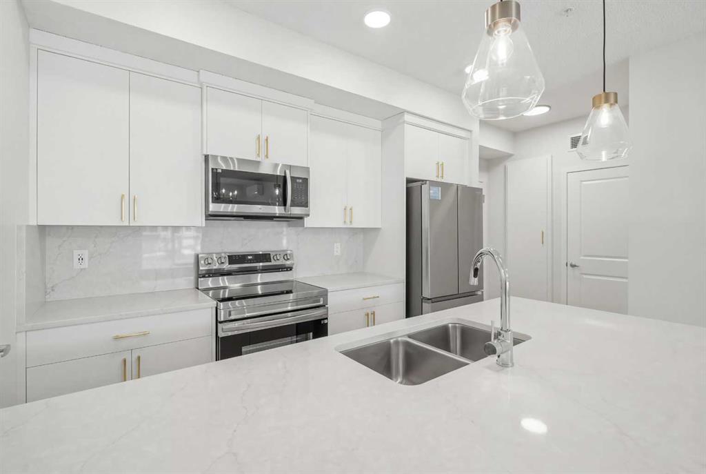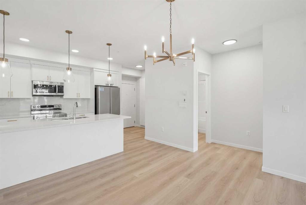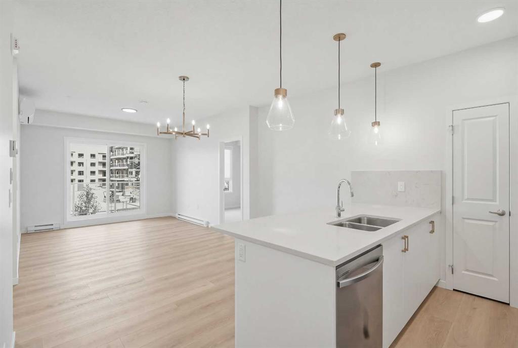 Welcome to this Stunning Community of Belmont! If you’ve been searching for a home that feels like home the moment you walk in, this 2 bedroom, 2 bathroom condo in Belmont is it (built 2024 by Cedarglen). With 9’ ceilings, big tripleglazed windows, and a bright, open layout, this low rise unit is perfect for modern, move-in ready living. The kitchen is a dream quartz countertops, sleek cabinets, stainless steel appliances, and a large island with breakfast bar seating. Whether it’s quick breakfasts, casual meals, or entertaining friends, it all flows seamlessly into the dining and living space. Sliding doors open to your private balcony with glass railings and a BBQ gas line making it your own little outdoor escape all year round. Both bedrooms are spacious, the primary with its own 4 piece ensuite, and the second bedroom conveniently next to a full bathroom with a soaker tub. In-suite laundry, titled underground parking, and air conditioning make everyday living effortless and comfortable no matter the season. Belmont is a growing, walkable community with parks, playgrounds, and green spaces just steps away. Shops, restaurants, and everyday amenities are nearby, and exciting developments are coming including: YMCA, public library, shopping plaza, and the future 210 Avenue SW LRT station. This makes it perfect for families, first-time buyers, downsizers, or anyone looking for a connected, vibrant neighborhood. The building is pet friendly, rental friendly, and move-in ready. Book your showing today and see why Belmont living is something special.