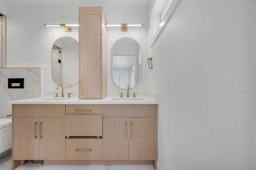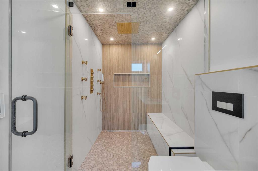 Welcome to this incredible 2 Storey home on a massive Pie Lot in Varsity! A rare find: this fully rebuilt home comes with an enormous triple garage and massive backyard. Extensively redone with the highest quality renovations, this home was taken to the studs and is complete with new electrical, plumbing, HVAC along with luxury modern finishes. Step inside to the spacious foyer complete with built in oak grain cabinets, table bench and shelving. Spacious cabinets provide a plethora of space for your daily living. The crescent kitchen is 20′ wide and sports a massive island with quartz waterfall. Bone White cabinet doors float above the wood grain cabinets to create a natural open kitchen with sleek Quarts countertops. Custom gold pedant lights compliment the natural light and sleek luxury wood finishing. Built in refrigerator blends into the cabinets to provide a consistent lush look. The kitchen transitions seamlessly to the light filled Living room with a stone tile centerpiece wrapping the cinder log style fireplace. Incredibly spacious and fits the whole family as well as guests when entertaining. Open right to the backyard deck via sliding doors. The main floor also hosts an office complete with extensive built in shelfing and oversized windows allowing natural light to pour in. Moving upstairs takes us through the Glass handrail staircase. Upstairs has three bedrooms, the laundry and a spacious bonus room. The master bedroom overlooks the front yard and comes complete with a beautiful ensuite and walk in closet.. The Ensuite has his and her vanities, and a massive tiled walk in shower with a overhead rainhead. Every bedroom is massive with large closets and yard views. The bonus room is the perfect family room with the wood grain flutes and sleek gold tile feature wall making the ultimate backdrop for entertainment. The large and spacious basement comes with a media room, 2 additional bedrooms, another bathroom and a wet bar. Because this home is on a pie lot, that means the backyard is much larger then a traditional rectangle lots and that allows for a massive triple garage while still giving way to huge amenity space. A tremendous amount of parking thanks to the cul-de- sac front access parking as well as the triple garage means the whole family has ample parking space. Large amounts of leisure space outside as well. Enjoy the rear deck, or the concrete Patio surrounded by young Aspens fitted with a firepit, barbeque and gazebo for summer lounging. The exterior of this home is adorned with fire resistant stucco and Roman Stone giving this home a beautiful timeless look. Minutes from Market Mal, the University of Calgary and the bow river. Peerless layout, finishes and location, book a showing today for this classic inner city masterpiece.